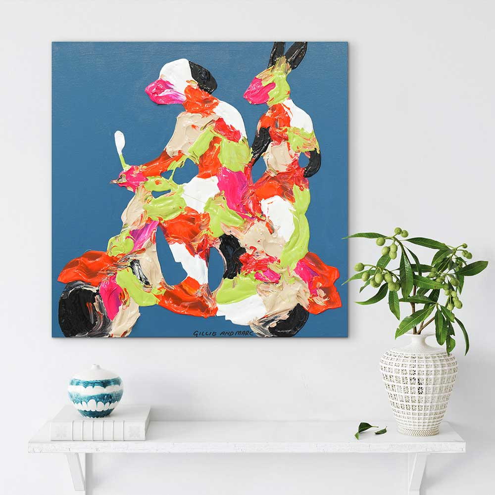 There are many paintings to choose from and some may be sold or not available. If there is any painting here that you absolutely LOVE and when you enquire about it has sold, please don’t worry. Gillie and Marc can do a commissioned painting for you that is similar but with colours chosen by you to fit seamlessly with your interior spaces. They can work with you to get the perfect painting for your space.