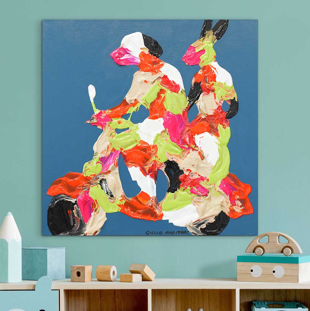 Gillie and Marc have been painting together for over 25 years. Their exclusive paintings come on card, board and canvas and are painted in acrylic and enamel.