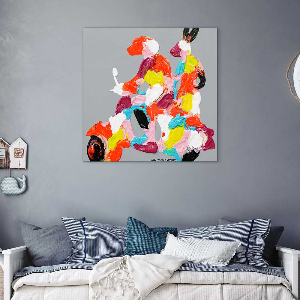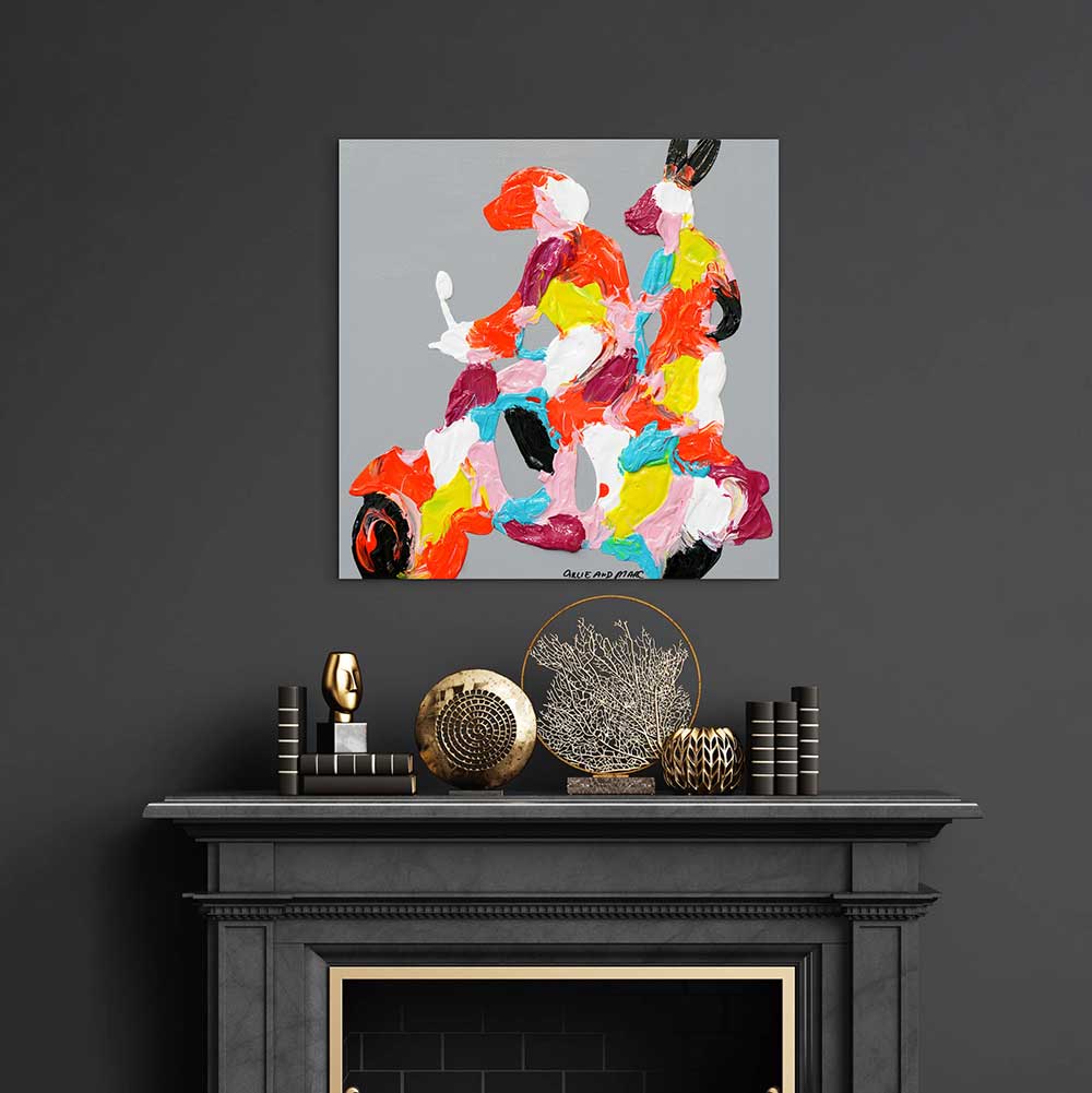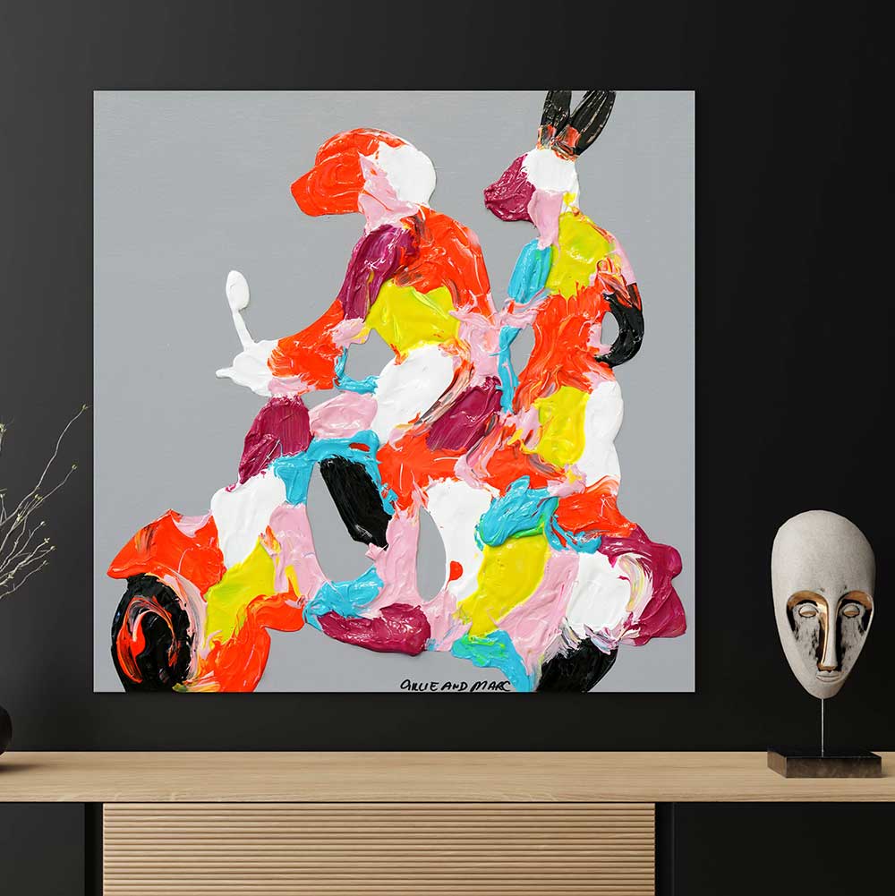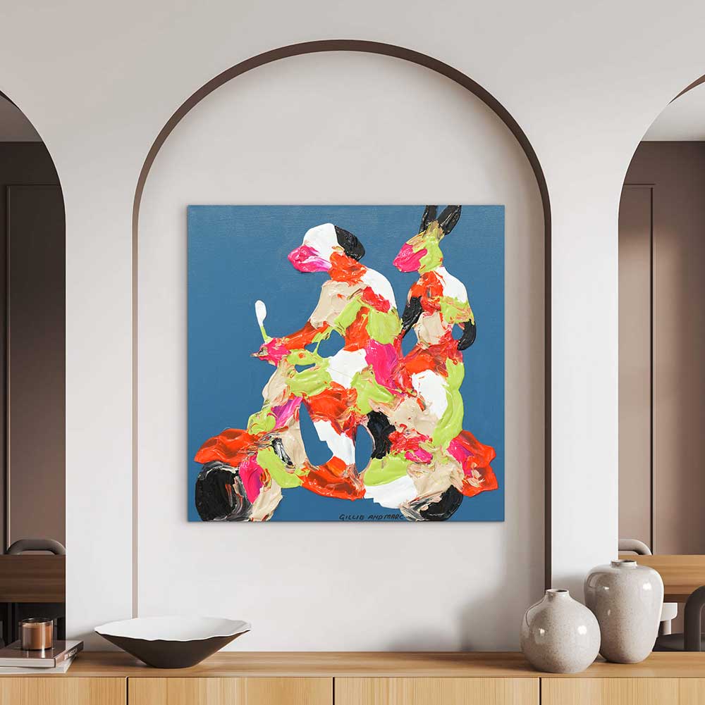 Abstract art is one of the freest styles, a style where the artists are not bound by the limitations of reality and can let their imaginations and emotions run wild. In their first abstract collection, Gillie and Marc have created a wonderland of colour, creating scenes of the world around them in a way that transcends the traditional. Inspired by the great abstract artists such as the Delaunays, Kline, and Kandinsky, Gillie and Marc have evoked a celebration of colour and joy, showcasing their emotions in a vibrant scene that is both beautiful and unique.