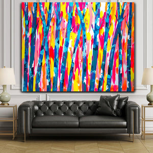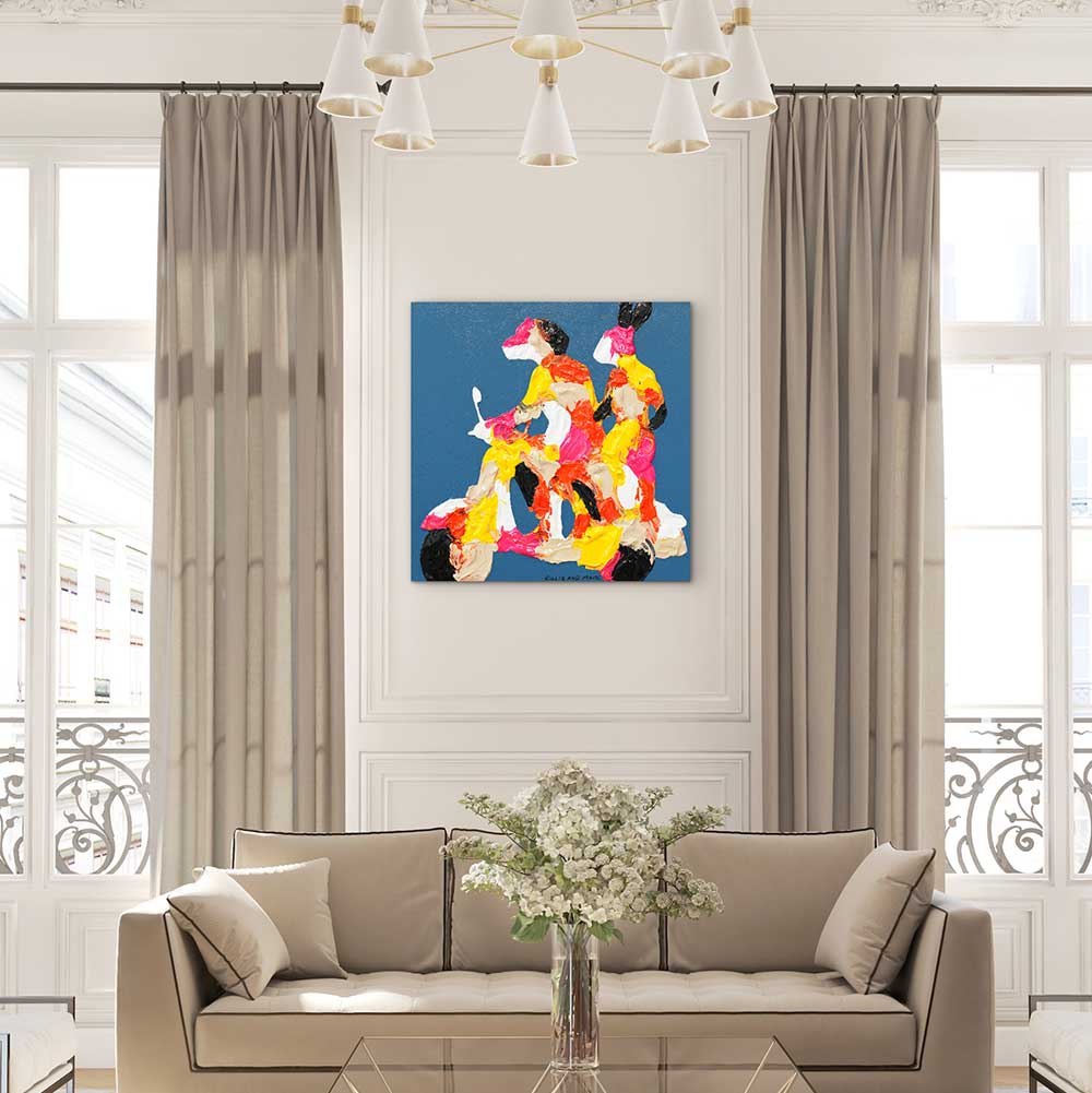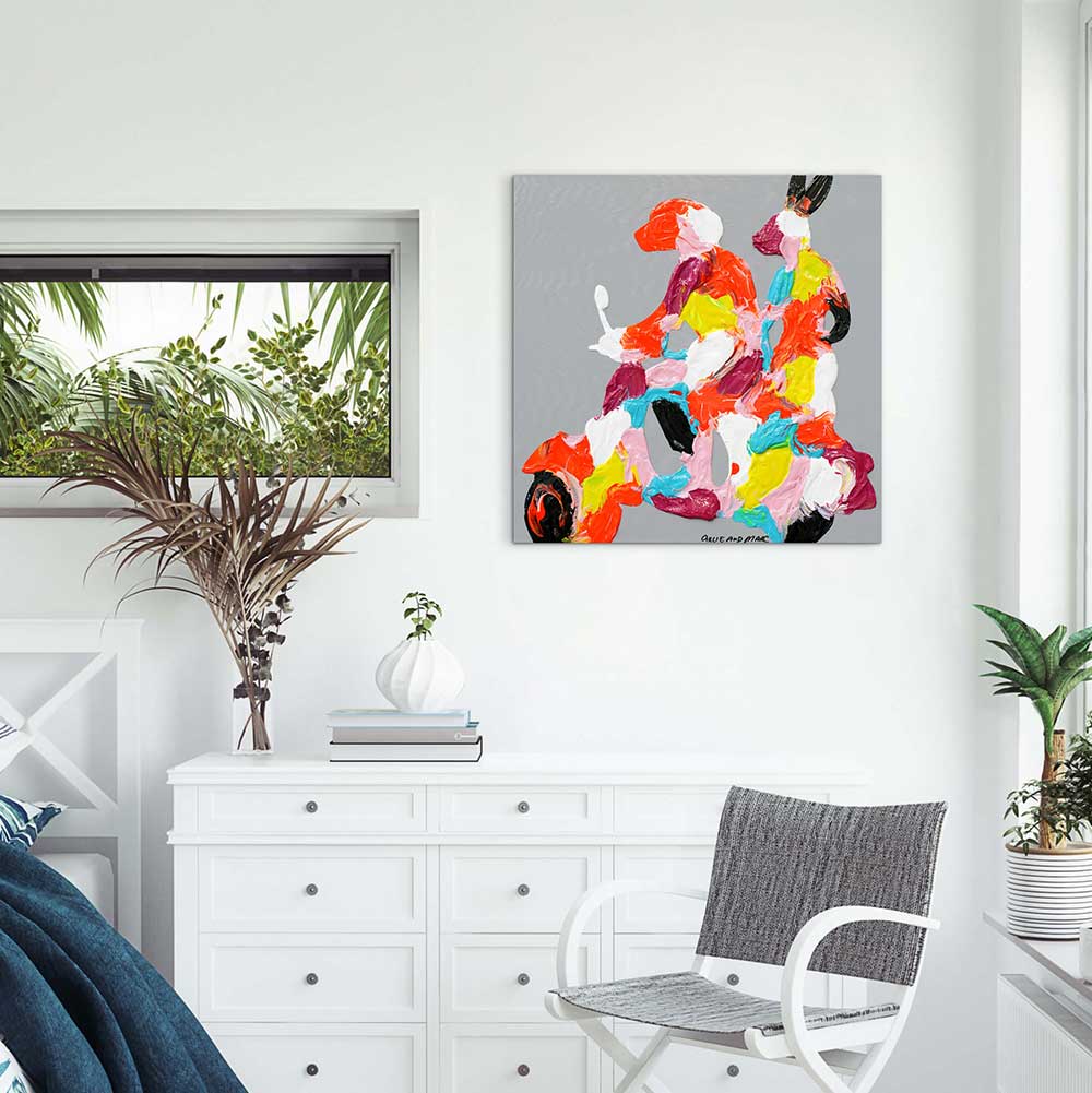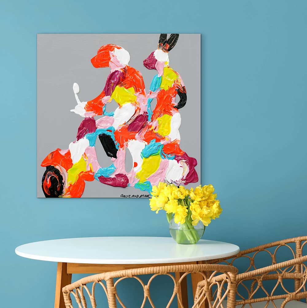 Abstract art is one of the freest styles, a style where the artists are not bound by the limitations of reality and can let their imaginations and emotions run wild. In their first abstract collection, Gillie and Marc have created a wonderland of colour, creating scenes of the world around them in a way that transcends the traditional. Inspired by the great abstract artists such as the Delaunays, Kline, and Kandinsky, Gillie and Marc have evoked a celebration of colour and joy, showcasing their emotions in a vibrant scene that is both beautiful and unique.
