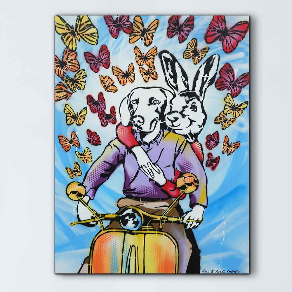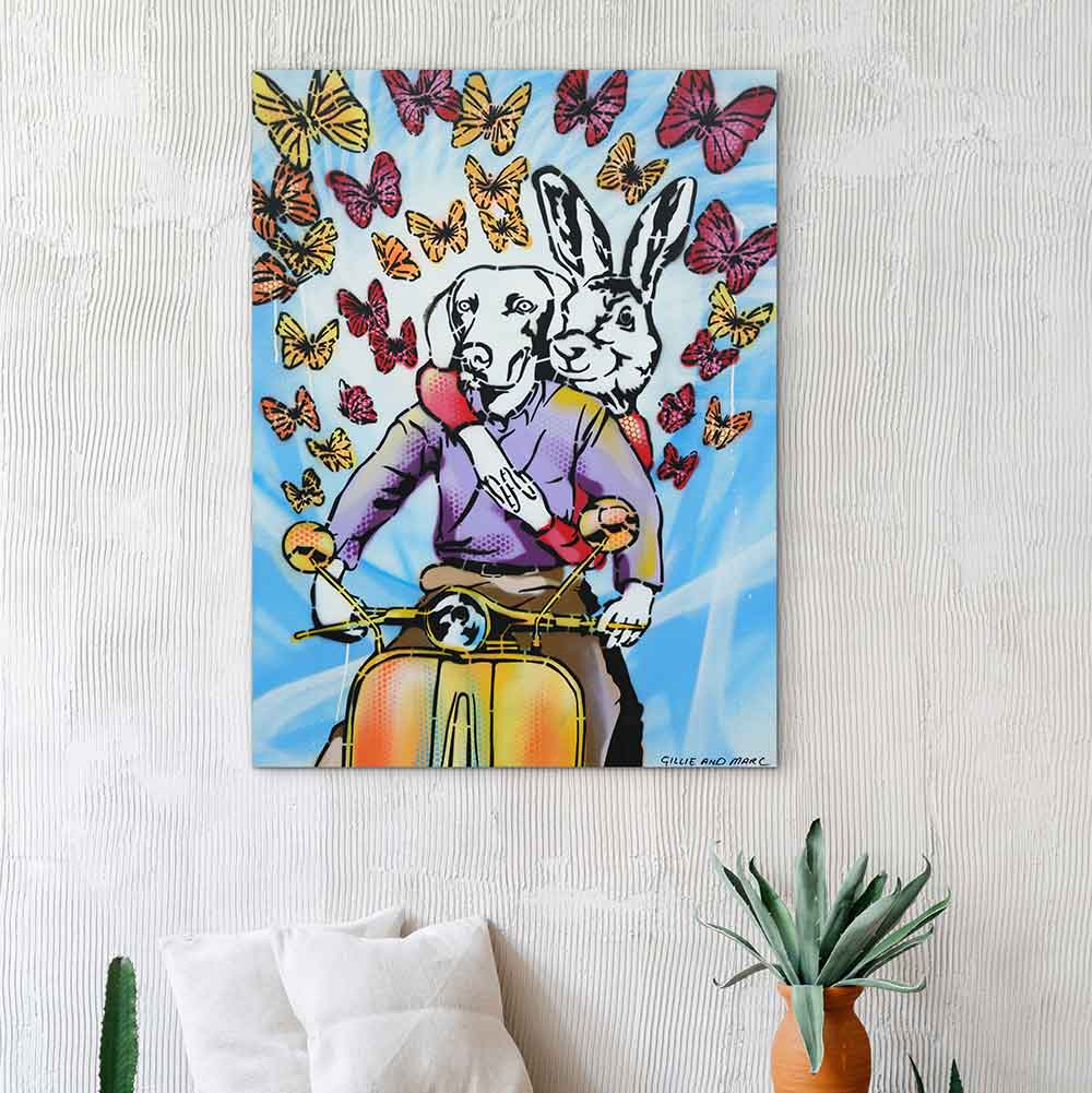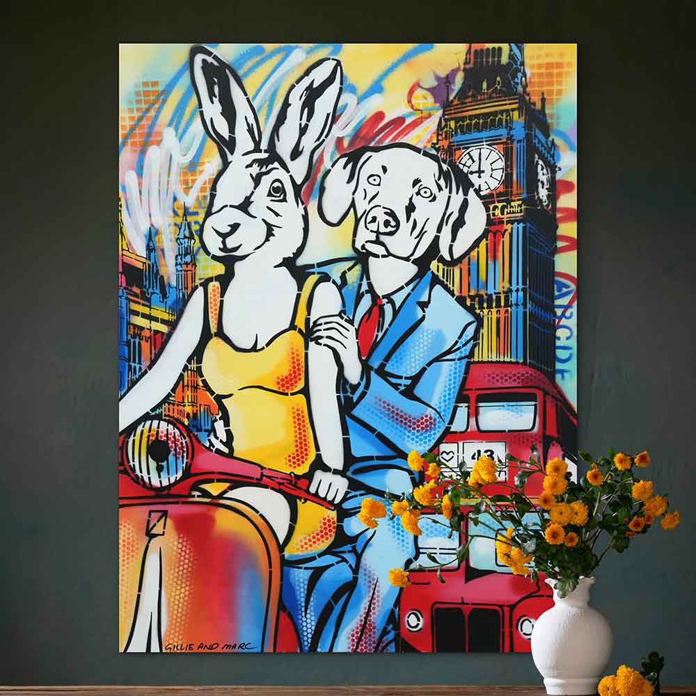 Gillie and Marc have been painting together for over 25 years. Their exclusive paintings come on card, board and canvas and are painted in acrylic and enamel.
