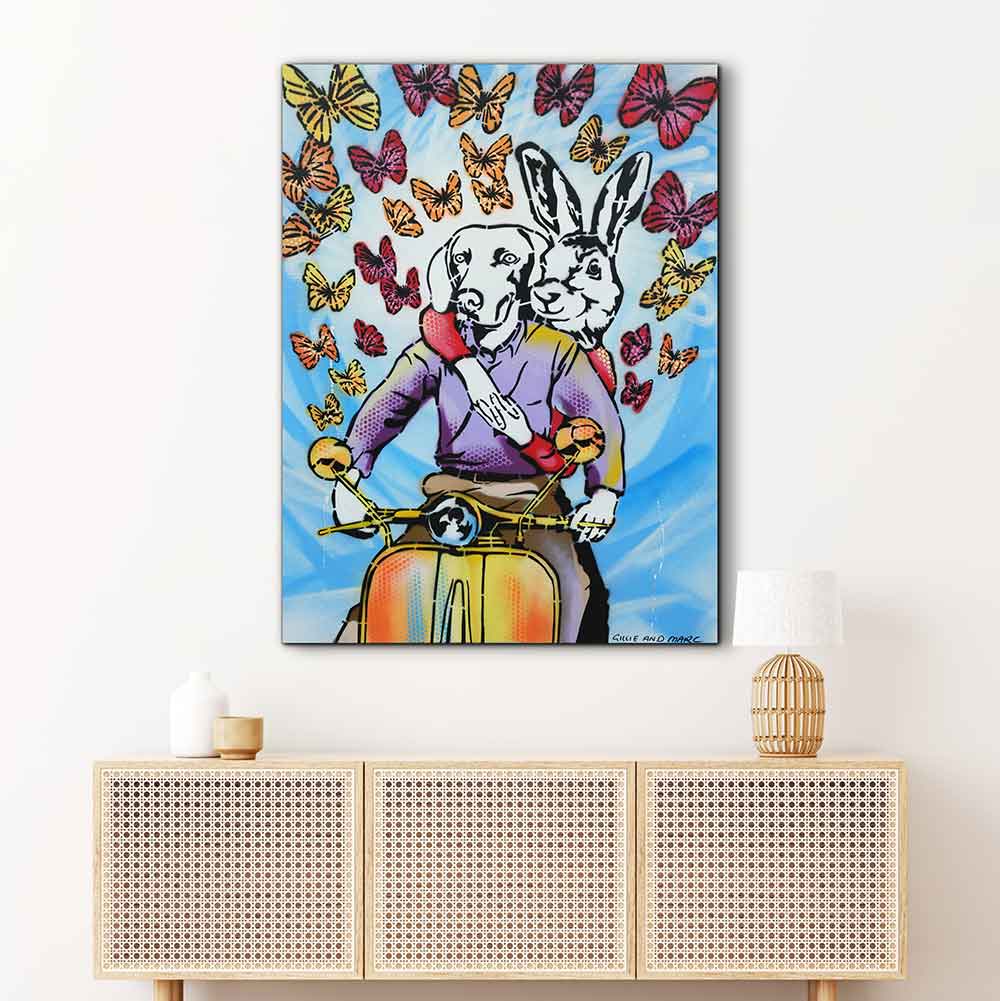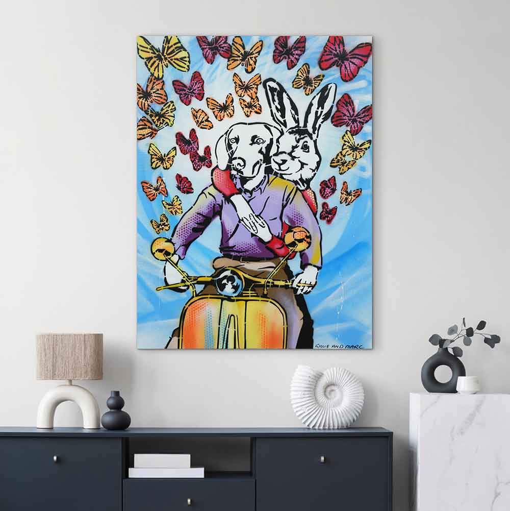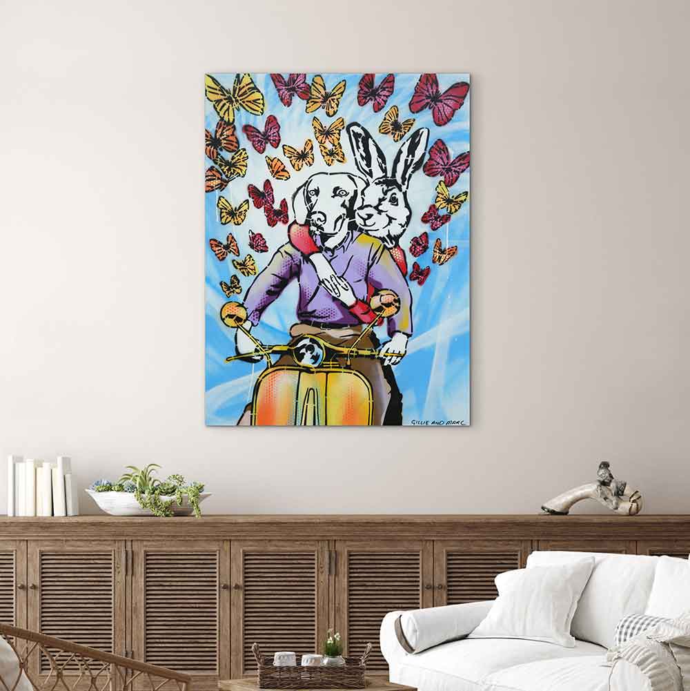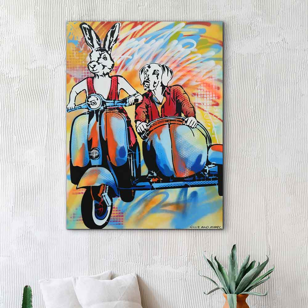 Gillie and Marc have been painting together for over 25 years. Their exclusive paintings come on card, board and canvas and are painted in acrylic and enamel.