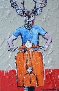 Description The first time Gillie and Marc saw a wild deer, they were together on a romantic holiday. The captivating image of this magnificent animal has always held a special place in their heart. Both the artists were fascinated and inspired by its commanding yet graceful nature. It’s quite reflective of the two of them! While Dogman and Rabbitwoman are their autobiographical characters, they felt touched by the spirit of a deer in that moment, in a way that brought them even closer together. As such, they elicited Deerman as the best friend of Rabbitwoman and Dogman. The artists share a mutual love for music, and certain songs they hear will bring them back to that wonderful trip where they met their deer friend (pun intended).