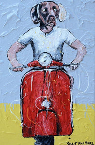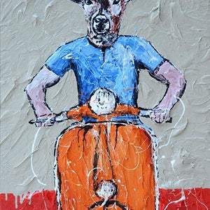 Description Rabbitwoman and Dogman set off on another adventure on their favourite vehicle. The Vespa reminds you to not worry so much about the destination, because life is about enjoying the ride!