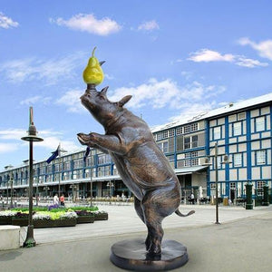 Description This gorilla immediately inspires feelings of awe and respect in his powerful stance. The pear he stands on represents fertility, wisdom and health in cultures around the world. Combined, the pair in this sculpture represents a future where gorillas are respected and valued, and recognised as the absolute kings that they are.