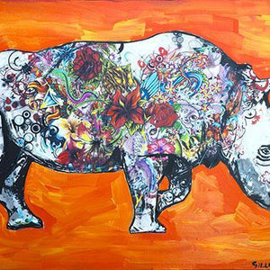 Description "Knight, the Disappearing White Rhino" captures a hauntingly beautiful yet tragic scene as a white rhino, named Knight, stands amidst a backdrop of moving silhouettes rendered in soft pastel hues, symbolizing the gradual disappearance of its species. The fading contours of the rhino evoke a sense of poignancy and loss, underscoring the heartbreaking reality of extinction due to poaching and habitat loss. Against this backdrop of fading silhouettes, the painting serves as a powerful commentary on the urgent need for conservation efforts to protect endangered species like Knight and to preserve the delicate balance of our ecosystems. Through its evocative imagery and subtle symbolism, the artwork urges viewers to confront the devastating consequences of human actions on the natural world and to take meaningful steps towards conservation and preservation.