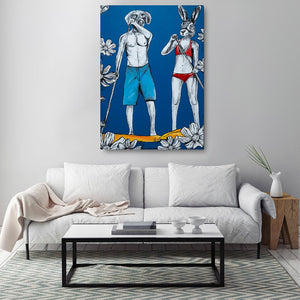 They are excited and proud to introduce their latest and favourite collection “Woodcut POP". These are carved wooden panels primed and sealed and then painted with a pop gloss enamel. These vibrant and exciting works allow the 2D paintings to fly off the wall giving excitement and dimension to wall art. Rabbitgirl and Dogman literally pop off the wall in a 3D effect. The modern explosion of colour and vibrancy is contemporary art at its cutting edge.