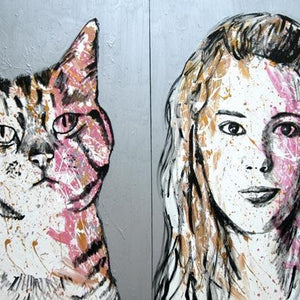 Artwork Features The purest example of the artist’s freehand work, Gillie and Marc’s ‘Contemporary Line & Stencil Paintings’ are a stunning series that pairs unashamedly bold colors with deep black line work to form intimate moments featuring their signature alter egos, endangered wildlife and more. The carefully selected vivid colors and unmistakable imagery means no two pieces are alike and can have multiple meanings the more they are viewed. Gillie and Marc paint each unique canvas side-by-side ensuring love is engrained in every brushstroke of each one-of-a-kind work of art. Recently inspired by the pop style of Andy Warhol and the iconic stencils of street artists Banksy and Mr. Brainwash, Gillie and Marc expanded their collection with the edgy addition of using spray paint stencils on their canvases. The stark contrast of bright colors beneath a dark stencil breathes life into this limited series, embodying Gillie and Marc’s philosophy of the importance of accessible art by playfully bringing the street to the canvas.