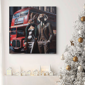 Description Set against the unmistakable silhouette of Big Ben and the Houses of Parliament, Dogman and Rabbitwoman glide through London on a bright red tandem bike. In this vibrant pop-art piece, Rabbitwoman beams as she enjoys the ride, while Dogman steers them forward with purpose. Their journey through the iconic cityscape reflects love, trust, and a shared spirit of adventure — a reminder that life is more fun when we take turns leading the way.