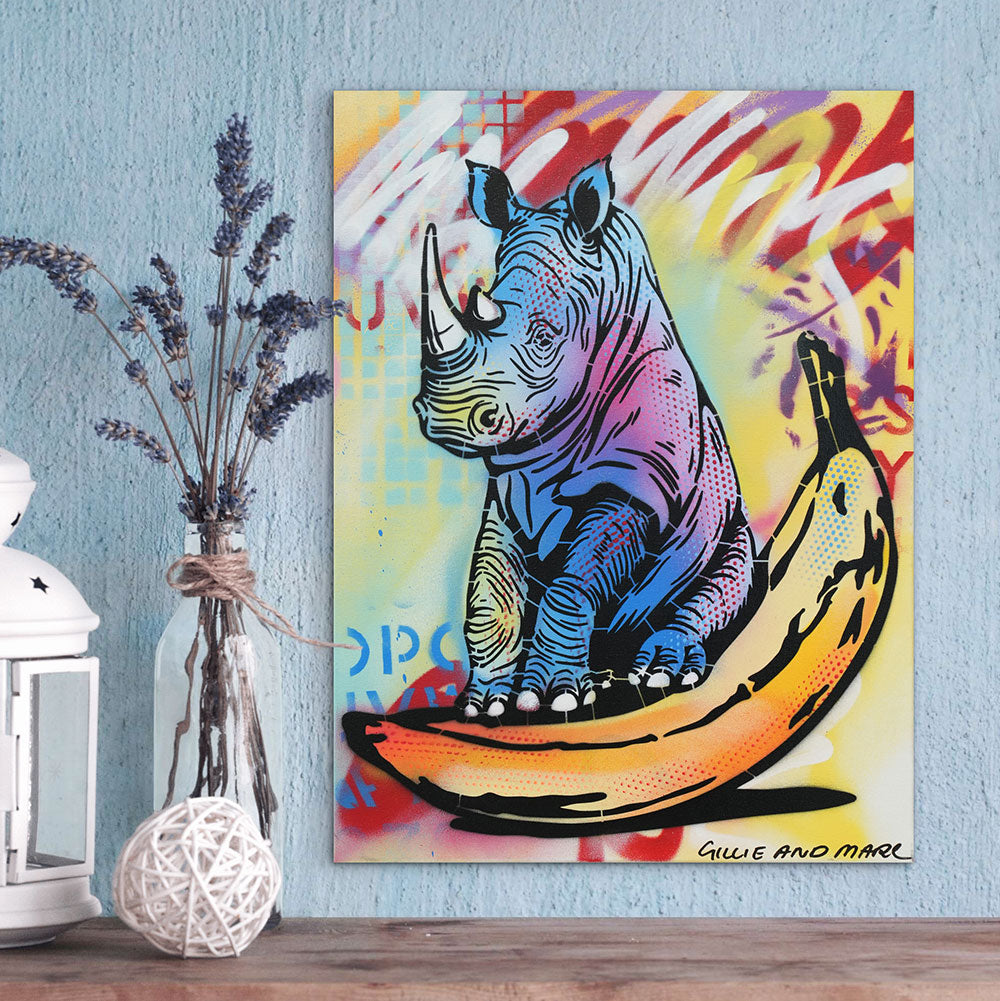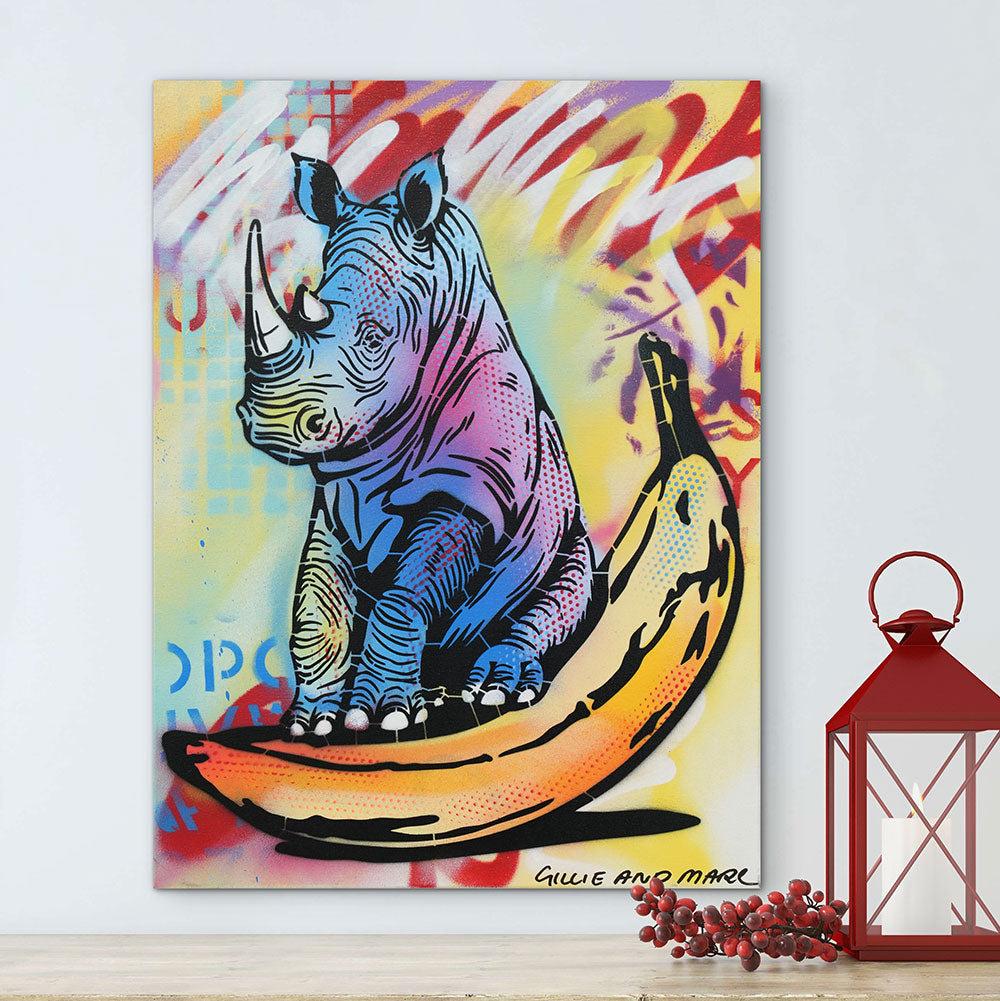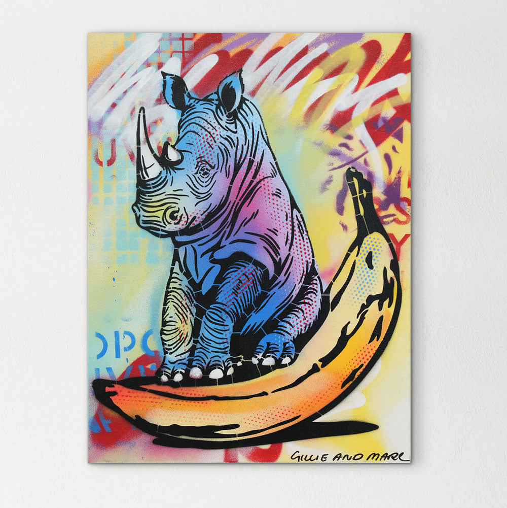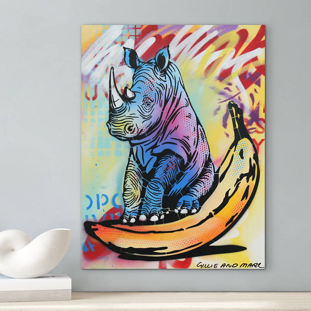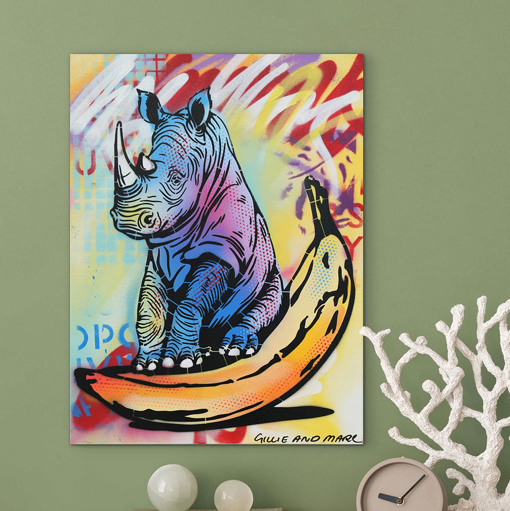 The Northern White Rhino Races on the Skateboard (Giclee Canvas Print)