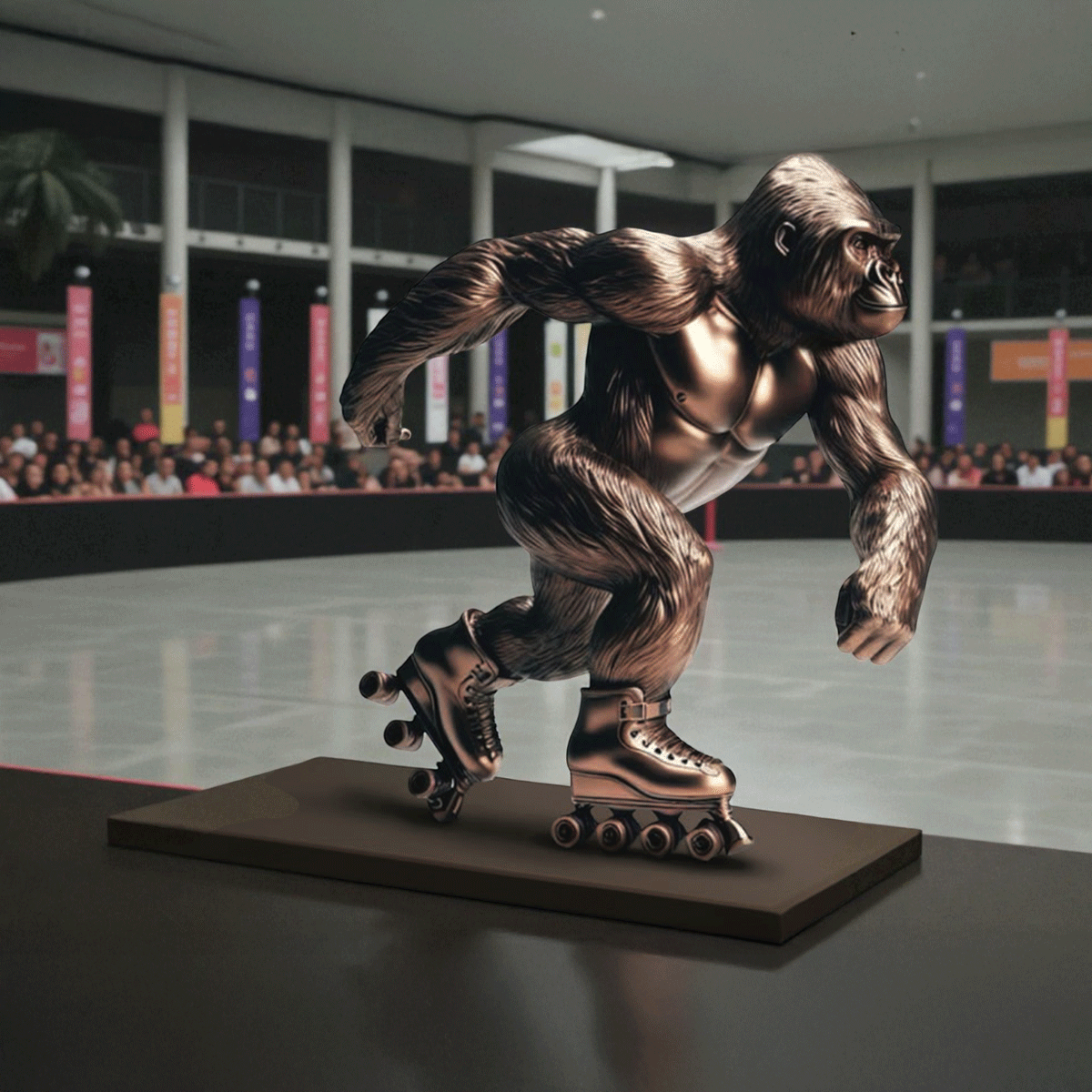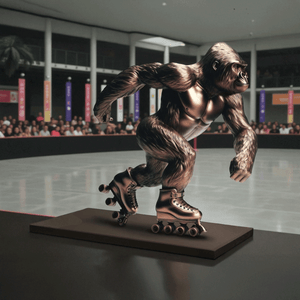 Sculpture Title The Mountain Gorilla Races on Rollar Skates