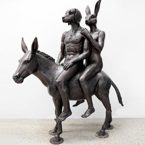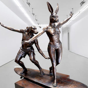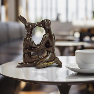 Description Gillie and Marc believe that you can fall in love with the same person, over and over again. Dogman and Rabbitwoman also like to fall in love over and over. And for them, the best way to do this, is with a kiss. Dogman and Rabbitwoman love to kiss. Over the last five years, they have locked lips in various Gillie and Marc paintings. Now their sweet and tender kiss has been immortalised in bronze for all of us to enjoy.