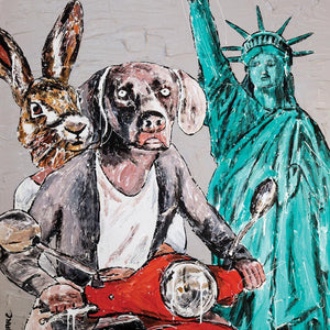 Description In New York, you can do anything you can dream of. Rabbitwoman and Dogman loved the sense of freedom they felt every time they came to the Big Apple. There was so much creativity and inspiration bursting from life in the streets. Rabbitwoman and Dogman loved to ride these vibrant streets, soaking it all in.