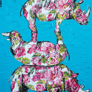 Description Rabbitwoman and Dogman are very good friends with rhinos and would do anything to protect them. Unfortunately, rhinos need desperate help if they are to survive. Rabbitwoman and Dogman lept at the chance to help their friends. Jumping on the rhinos back they rode forth to inspire and help people to fall in love with the rhinos and move towards a better world of conservation.