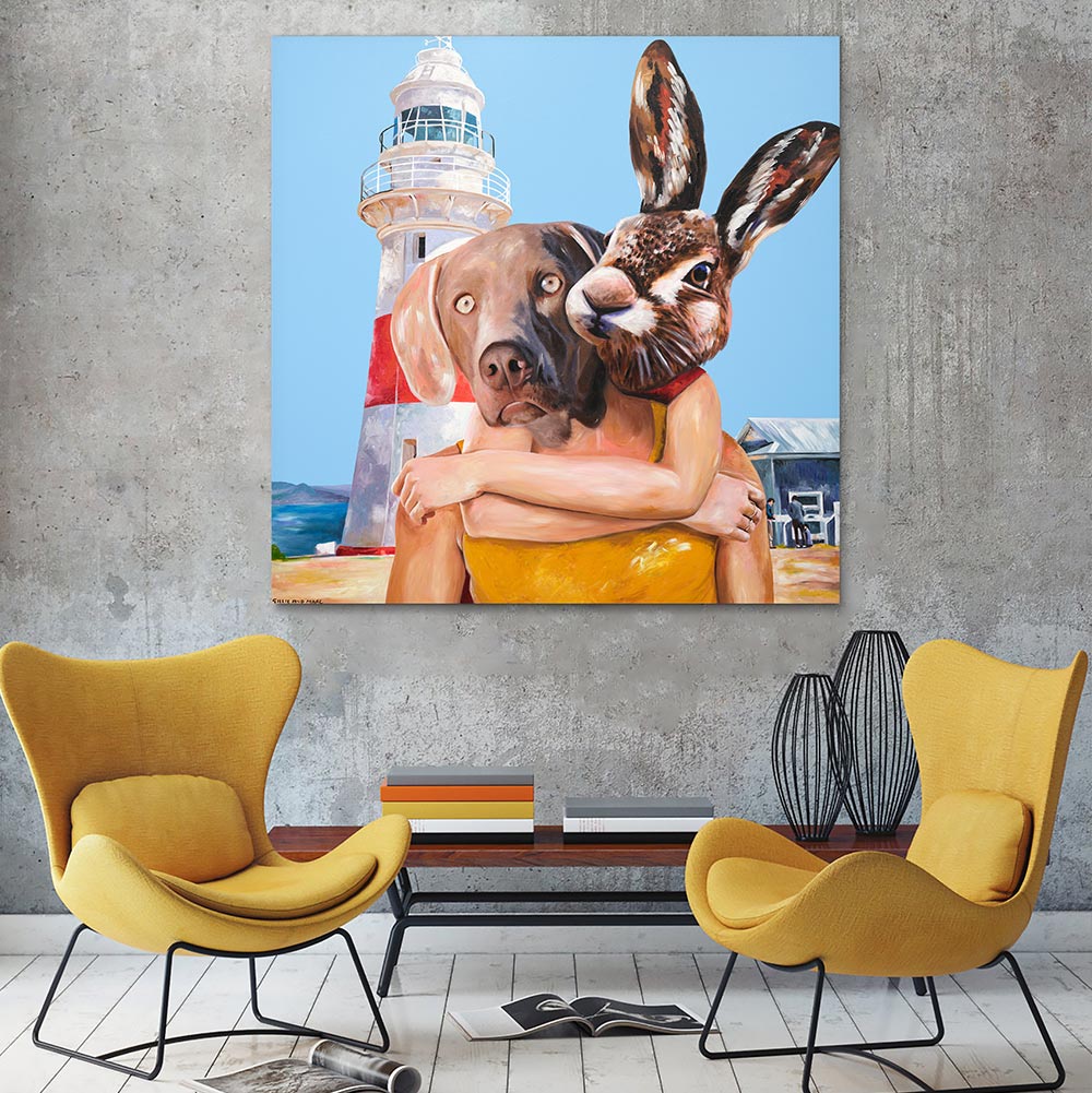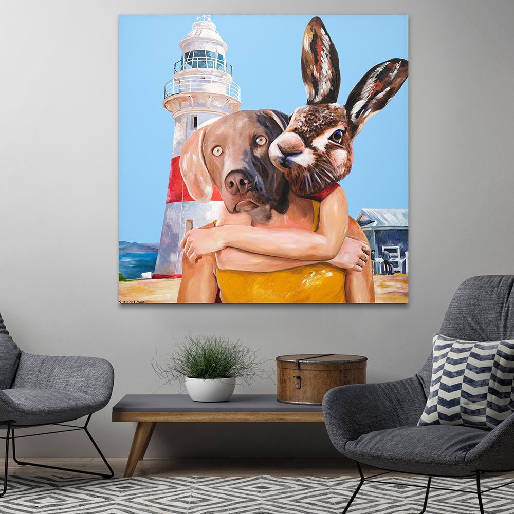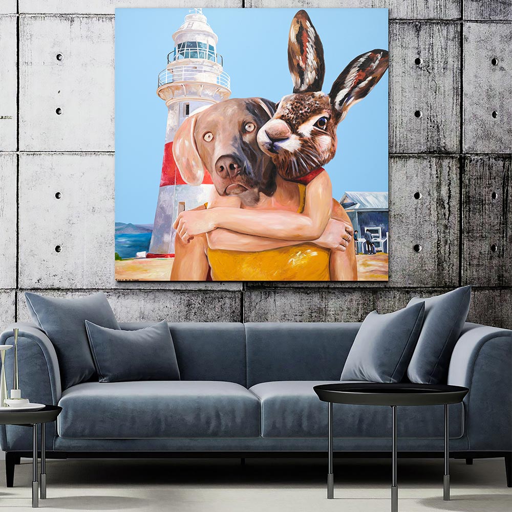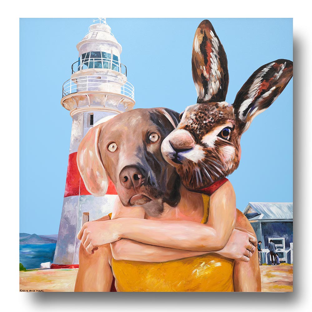 Style Contemporary Figurative, Adventure, Wildlife Description Rabbitwoman and Dogman couldn’t wait for summer. It meant so many wonderful days lying in the sun, playing in the waves, and feeling the exfoliation of sand between their toes. Today was one of those gorgeous days, the perfect excuse to head to the beach. Jumping in their Mini convertible they looked as hot as the sun. Artwork Features The iconic style of Gillie and Marc’s Thick Texture Paintings provide the tangible dimensions of a sculpture with the convenient spatial simplicity of a painting. Multiple layers of impasto are mixed with the paint. With each piece, Gillie and Marc are sharing a part of their unique experience through choppy brushstrokes and captivating visuals that create a harmonious image that is more than just a painting.