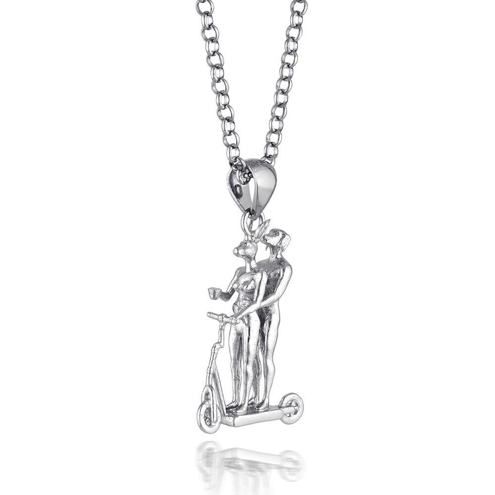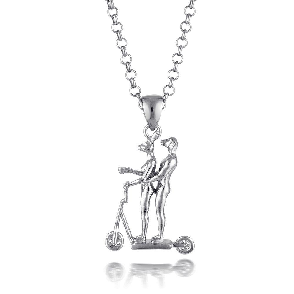 Medium Sterling silver scooter riders pendant and silver chain Style Contemporary Jewellery, Animals, Romanticism
