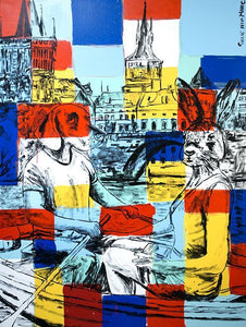 They are excited and proud to introduce their latest and favourite collection “Woodcut POP". These are carved wooden panels primed and sealed and then painted with a pop gloss enamel. These vibrant and exciting works allow the 2D paintings to fly off the wall giving excitement and dimension to wall art. Rabbitgirl and Dogman literally pop off the wall in a 3D effect. The modern explosion of colour and vibrancy is contemporary art at its cutting edge.
