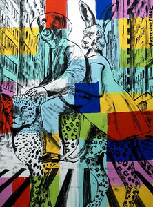 Description Rabbitwoman and Dogman love the hustle and bustle of the city but wherever they are, be it Sydney, New York, or Shanghai, they always saw the wildlife. Sometimes they would imagine the concrete jungle coming alive with animals, with parrots flying overhead and rhinos peeping out from behind a skyscraper. They liked it better that way.