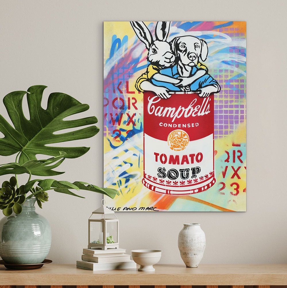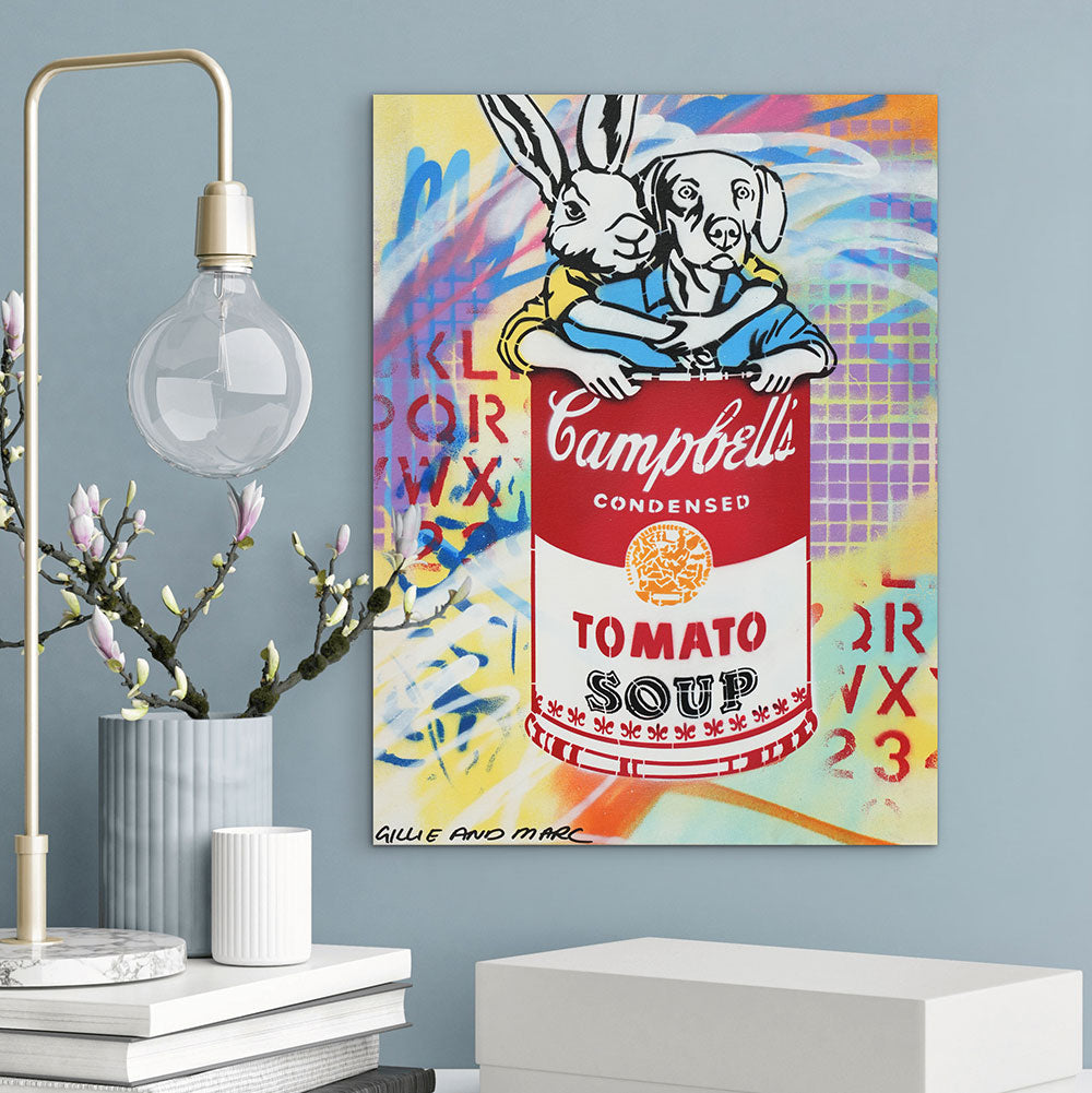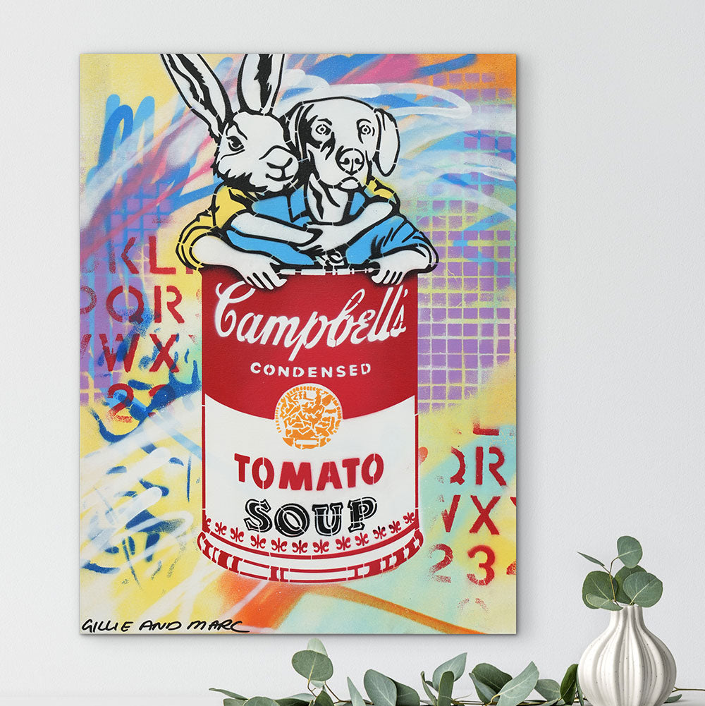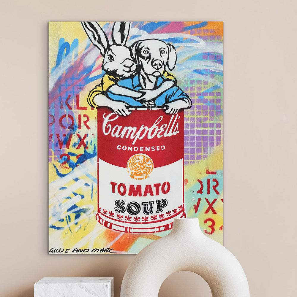 Description Two Souls follows rabbitwoman and dogman as they weave through the glowing streets of Paris on a bright red scooter, the Eiffel Tower rising behind them like a promise of adventure. Painted with Gillie and Marc’s signature burst of colour and urban energy, the work celebrates partnership, spontaneity, and the joy of discovering the world together. With wind, movement, and love all captured in a single frame, the artwork reminds us that every journey becomes extraordinary when shared with your soulmate.