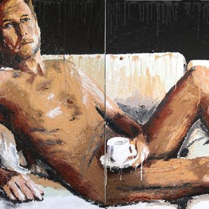 Artwork Features Sending you to a world of luxury and opulence, this range of gold leaf paintings shows Rabbitwoman and Dogman and all wildlife at their finest. Inspired by the ancient methods of gold leaf and the more contemporary styles of Gustav Klimt, Gillie and Marc are showing the loving journeys of their favourite muses and all endangered wildlife with an extra bit of sparkle. Gold leaf sheets are carefully laid onto the canvas, brushed, and smoothed out, adding a wonderful, glittery effect to its surface. Gillie and Marc believe that every moment can be a luxury. This idea is brought to life in these paintings, with even the simplest moments becoming incredible.