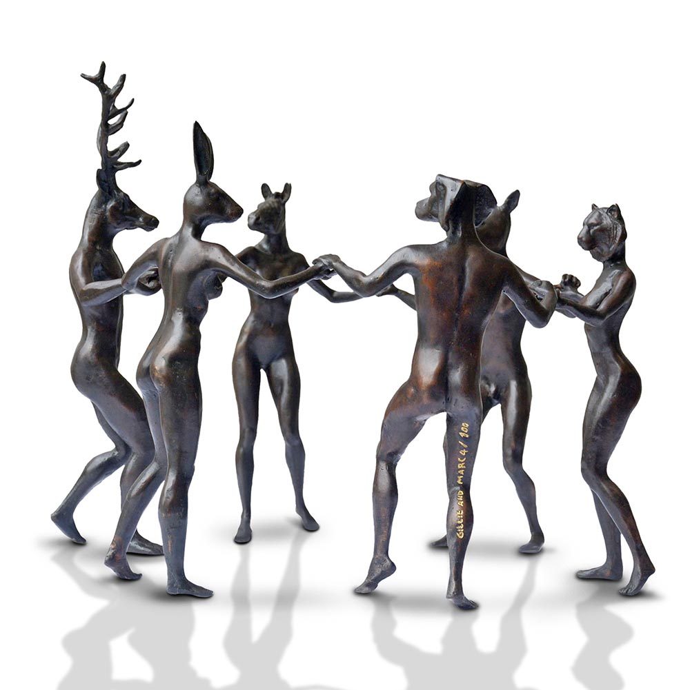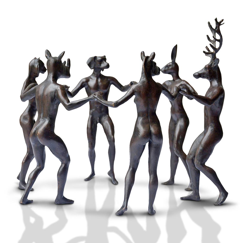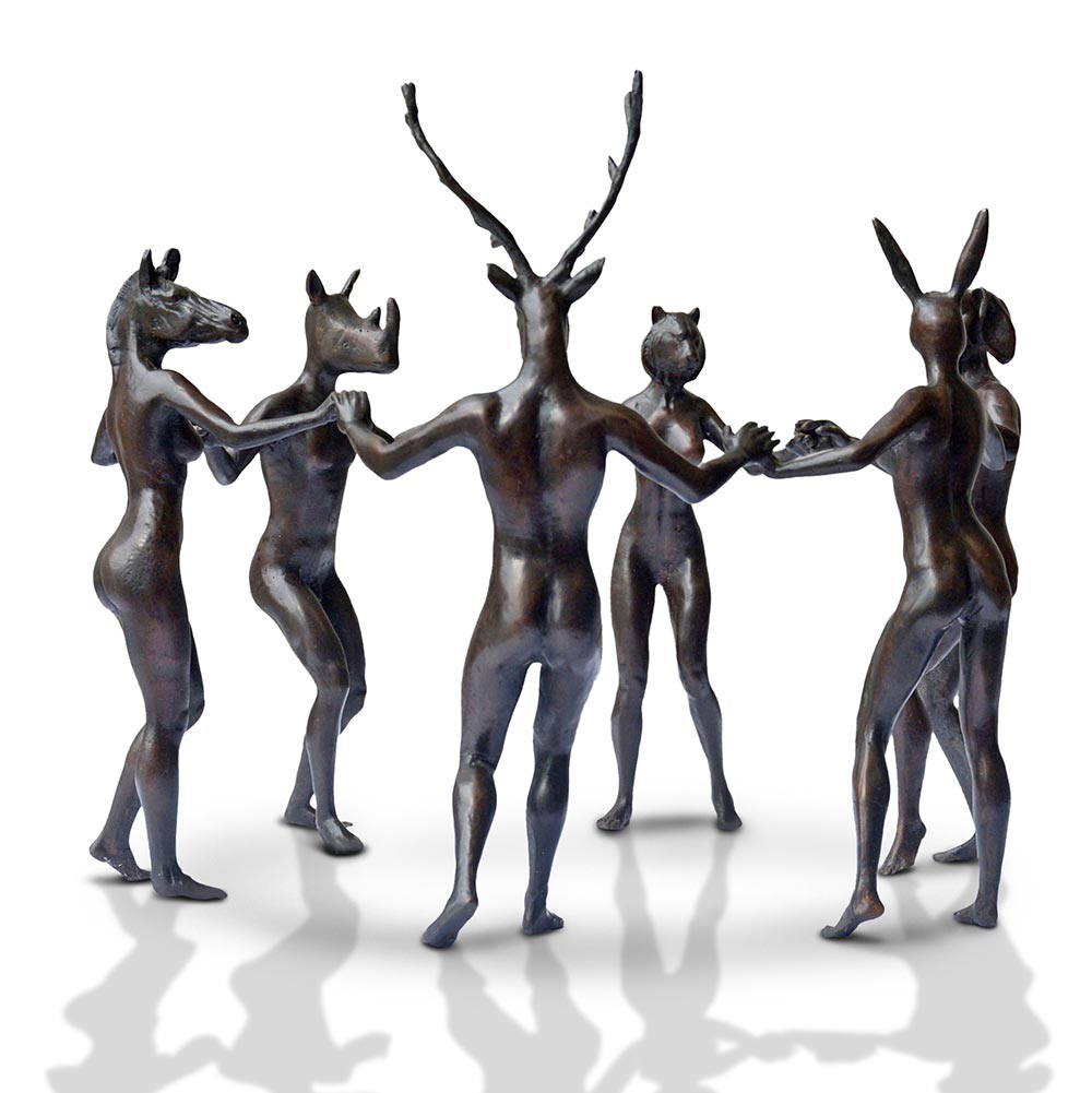 Description This bronze sculpture elegantly portrays Rabbitwoman and Dogman entwined in a joyful dance, encircled by their trusted friends, Catwoman, Rhinoman, Deerman, and Tigerwoman. This enchanting scene symbolizes the celebration of unity, diversity, and the interwoven connections between species. It captures the essence of harmony and camaraderie, as these diverse characters join together, transcending boundaries and embracing the beauty of friendship. In this sculpture, we witness the power of love and acceptance, reminding us that together, we can create a world where all beings coexist in harmony and thrive in shared joy.