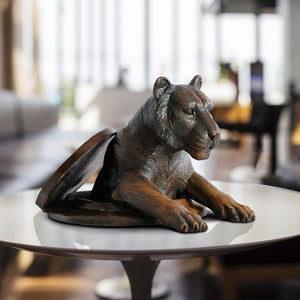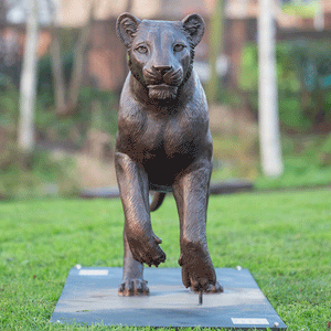 Description Inspired by the true story and the film ‘Born Free’, this sculpture is a celebration of an orphaned lion cub who was saved by a loving couple. In Northern Kenya, a game warden called George Adamson was sent to deal with a lion who killed a man. Finding three cubs that were left behind he took them home to his wife, Joy, naming them Big One, Lastika and Elsa. They raised the cubs themselves rehoming two at a zoo. But they had formed a special connection with Elsa. They decided to release her to the wild and started the difficult journey of teaching her to fend for herself. After a lot of setbacks including a lack of hunting skills, being attacked by a warthog, and even becoming seriously injured after a different attack, Elsa found her feet. With a lot of hard work and dedication, they taught her how to be a wild cat and set her free in Kenya. Elsa grew to have cubs of her own, starting a new generation of lions that would have never been.