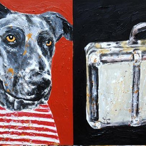 Description Flower Dogman is a bold and endearing portrait of Dogman, Gillie and Marc’s beloved character, depicted here with a playful twist—a bright orange flower held gently between his lips. Dressed in a sharp suit with a vivid blue shirt and red tie, Dogman radiates charm and quiet confidence. The background bursts with a kaleidoscope of graffiti textures, neon hues, and layered stencils, creating a dynamic street-art atmosphere. Blending pop culture with canine loyalty and tenderness, this piece celebrates love, individuality, and the simple power of a flower to brighten the world.