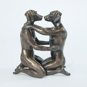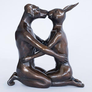 Description Gillie and Marc believe that you can fall in love with the same person, over and over again. Dogman and Rabbitwoman also like to fall in love over and over. And for them, the best way to do this, is with a kiss. Dogman and Rabbitwoman love to kiss. Over the last five years, they have locked lips in various Gillie and Marc paintings. Now their sweet and tender kiss has been immortalised in bronze for all of us to enjoy.