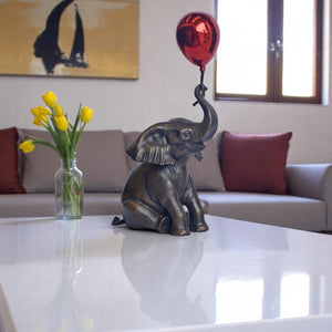 "Elephant Makes a Wish with Red Balloon" is a heartfelt bronze sculpture capturing a baby elephant reaching toward hope. With its trunk lifted high, it holds a bright red balloon—symbolising dreams, escape, and the longing for a better, safer world. This tender moment speaks to the vulnerability of young elephants and the universal desire for freedom, love, and protection. A gentle yet powerful reminder of what we stand to lose, and the beauty we must fight to preserve.