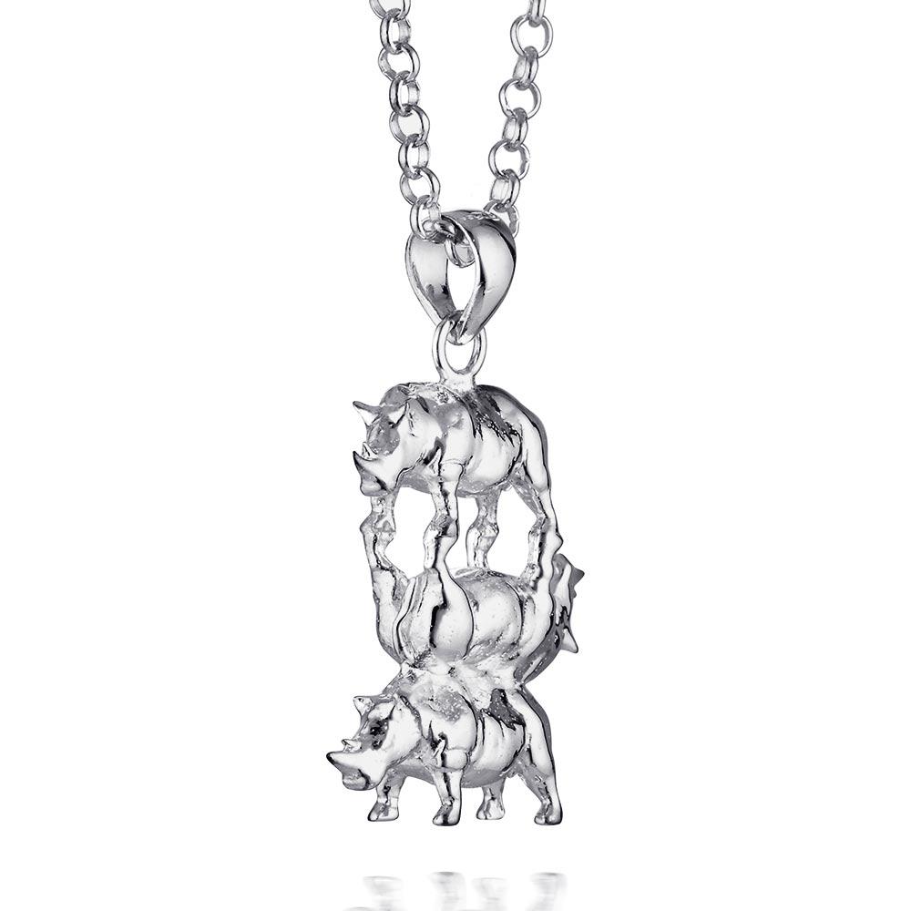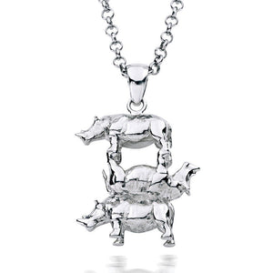 This gorgeous pendant features Sudan, Najin and Fatu – the last three Northern White Rhinos. These gorgeous creatures represent both a sad story, and bright future. The loss of their species and Gillie and Marc’s monumental sculpture titled The Last Three installed in New York City fueled widespread awareness about rhino conservation, giving hope to future species. This dazzling silver pendant honours the Northern White Rhinos. By wearing them close to your heart, and far away from poachers you’ll be supporting them in an alluring statement of love and conservation.