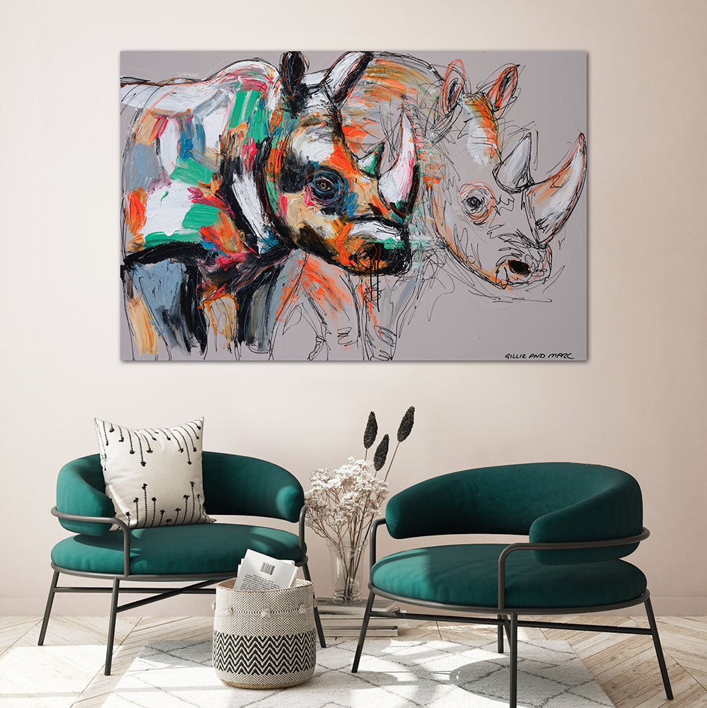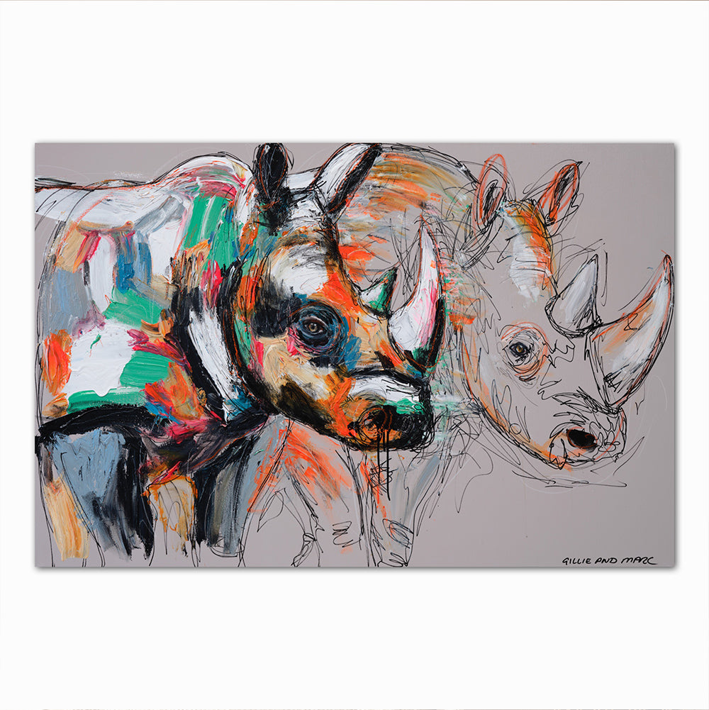 In this highly expressive and passionate style Gillie and Marc have let their emotions run free in this explosive collection of freehand painting. Inspired by the styles of Brett Whiteley, Francis Bacon, and Jean-Michel Basquiat, Gillie and Marc have combined enamel paint with oil pastel to breathe life into the worlds most endangered species. Over the past five years, Gillie and Marc spent hours sketching and studying wildlife, travelling the globe to meet these animals up close. These sketches have now been brought to life in vibrant colour with love and passion. Each painting is created as a team with both the artists bringing their own emotion into every painting.