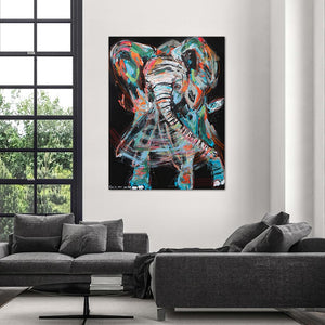 "Tusk, the vanishing African Elephant," is a poignant painting that conveys both the majesty and the vulnerability of one of Earth's most magnificent creatures. The painting captures a powerful African elephant, its tusks prominently displayed as it shakes its trunk while facing the camera with a captivating gaze. Behind this iconic figure, a moving silhouette in soft pastel hues unfolds, symbolizing the gradual disappearance of these awe-inspiring animals. The gentle dance of shadows serves as a visual elegy for the vanishing African elephants, emphasizing the urgency of conservation efforts. "Tusk" serves as a striking reminder of the critical need to protect these majestic beings and their habitats, prompting viewers to reflect on the interconnectedness of humanity and the natural world, urging collective action to ensure the survival of these remarkable creatures.
