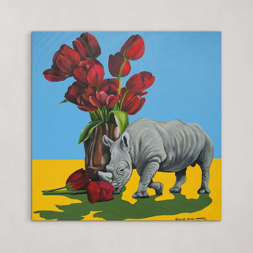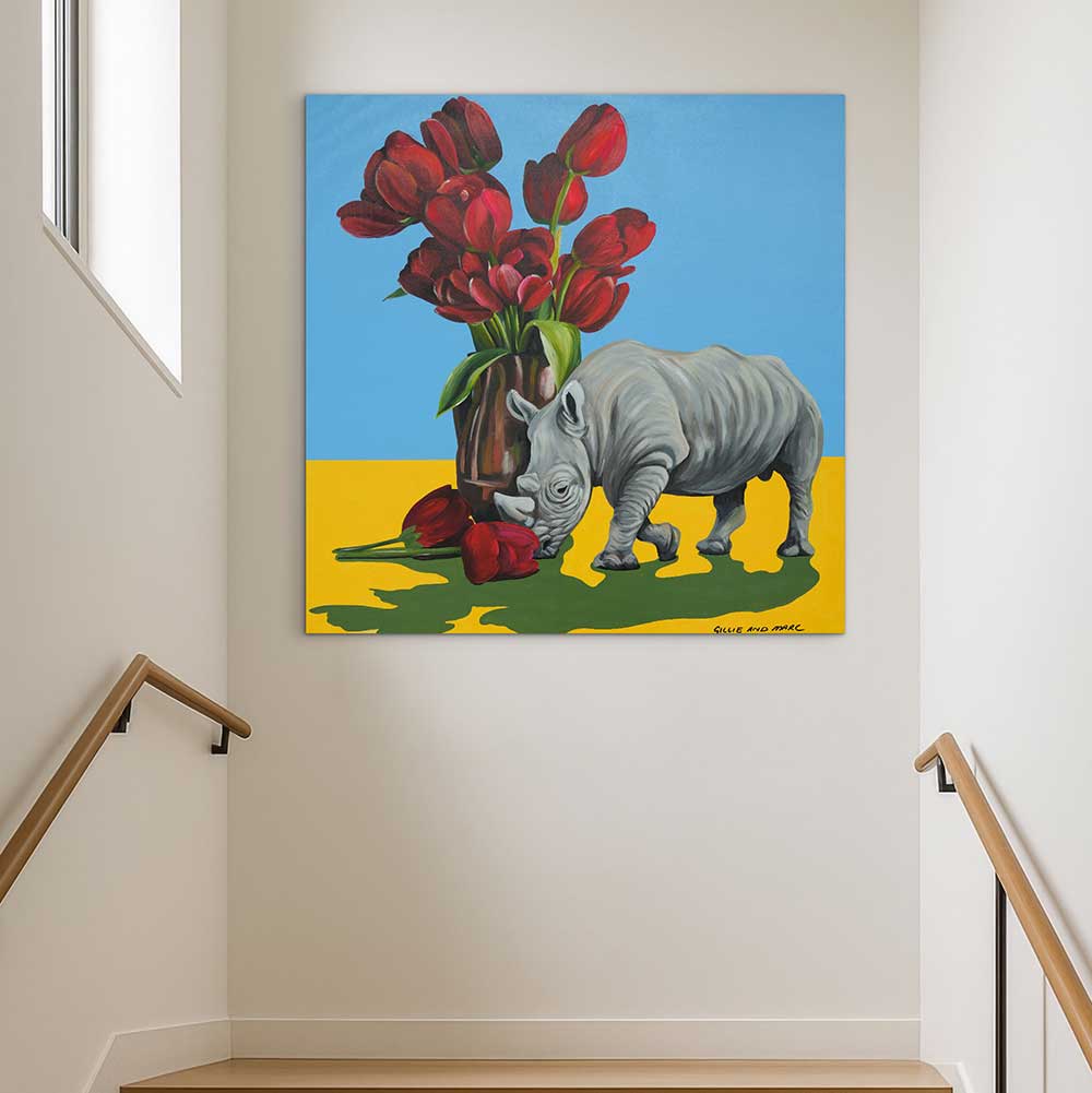 Rhinos Loves Tulips (Original Painting)