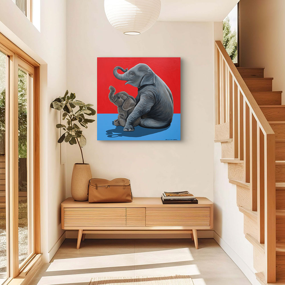 In Elephants Forever, a young elephant sits tenderly beside its plush toy counterpart, symbolizing comfort, companionship, and innocence. The gentle interaction between the real elephant and the stuffed animal highlights the warmth and loyalty often associated with these majestic creatures. The contrasting textures—smooth, lifelike skin versus the soft, worn fabric of the toy—enhance the sense of nostalgia and affection. Elephants Forever invites viewers to reflect on the enduring nature of friendship and the comforting connections we form, even with objects that remind us of simpler, more innocent times.