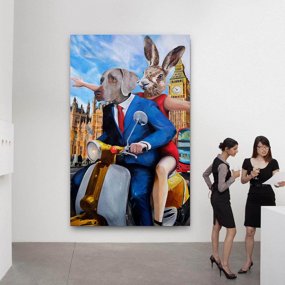 As Dogman and Rabbitwoman journey across the globe, they make a habit of stopping in some of the world's greatest cities to rekindle their love for each other. From Paris to Tokyo, they profess their love in settings that seem tailor-made for romance. But no place can compare to the feeling they experience in London. London was a calling and they answered as they zoomed around past Big Ben on their golden vespa.
