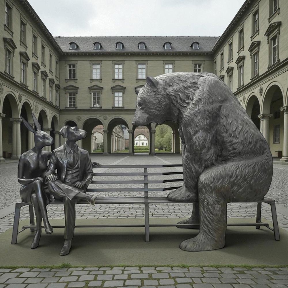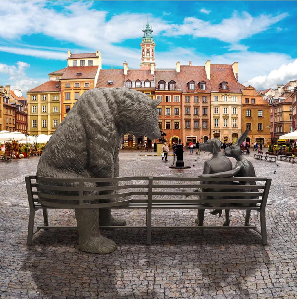 Description A captivating bronze sculpture bench invites the public into a powerful moment of reflection and unity as an endangered grizzly bear sits firmly at one end of the bench, gazing across toward Rabbitwoman and Dogman who sit together at the opposite end. Between them lies an open space — a deliberate invitation for the public to join in, bridging the distance and completing the circle of connection. The grizzly bear, sculpted with strength and presence, symbolizes resilience and the raw majesty of nature. Its placement at one end emphasizes both its independence and its vulnerability, highlighting the delicate balance that exists between humans and wildlife. On the other end, Rabbitwoman and Dogman — Gillie and Marc’s iconic Wildlife Warriors — sit in quiet engagement with the bear. Their openness reflects guardianship, friendship, and the human responsibility to protect endangered creatures. The empty space between them becomes more than just a seat; it is a symbolic threshold where people can step into the story. By taking their place between the Wildlife Warriors and the grizzly bear, members of the public become active participants, embodying the bridge between humanity and the natural world. The Grizzly Bear Bench of Friendship transforms a simple act of sitting into a metaphor for coexistence. It reminds us that protecting wildlife is not a distant mission — it is something that requires us to sit with them, see them, and stand beside them.