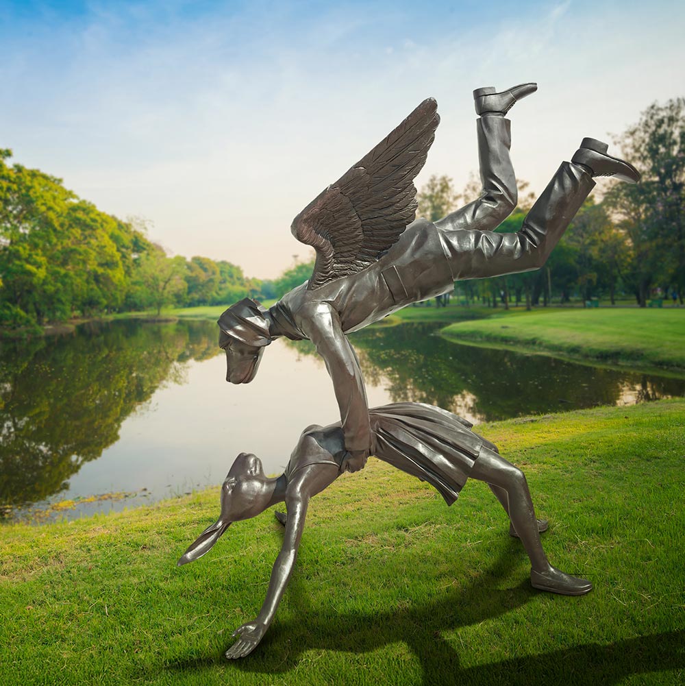 All Birds were Welcomed to Feast with Rabbitwoman and Dogman (Bronze Sculpture)