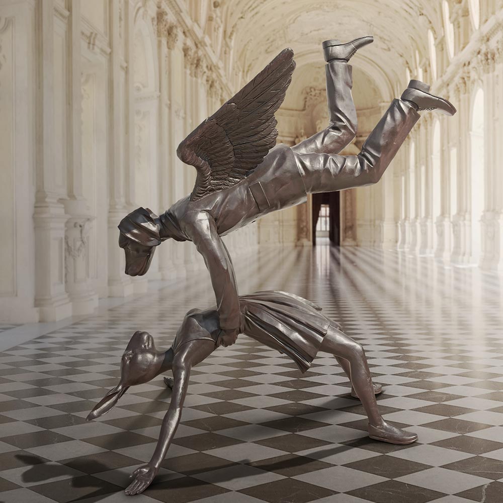 Rabbitwoman and Dogman on top of the big world (Bronze Sculpture)