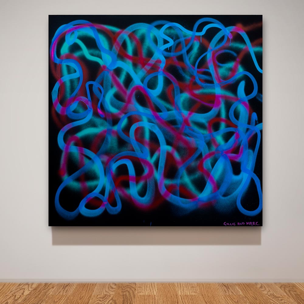 After studying the patterns of actual brainwaves, Gillie and Marc are bringing them to life in their most emotional exhibition, Brainwaves. Created with pure emotion, these paintings reflect the emotional state of the artists while painting. To encourage their minds into different emotional states, Gillie and Marc played a different song for each painting, tapping into their inner feelings and coaxing them onto the canvas. Brainwaves is a collection of emotions and the secret images they create.