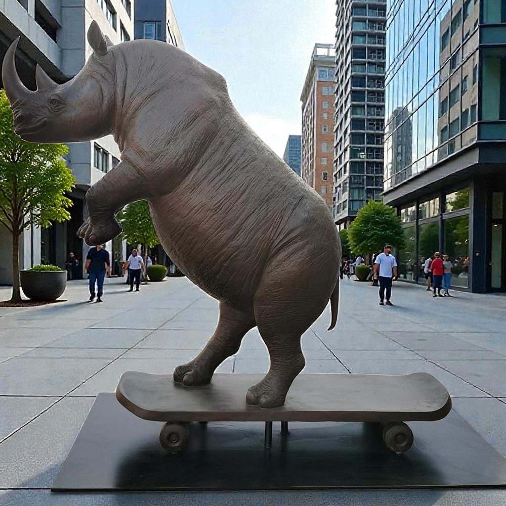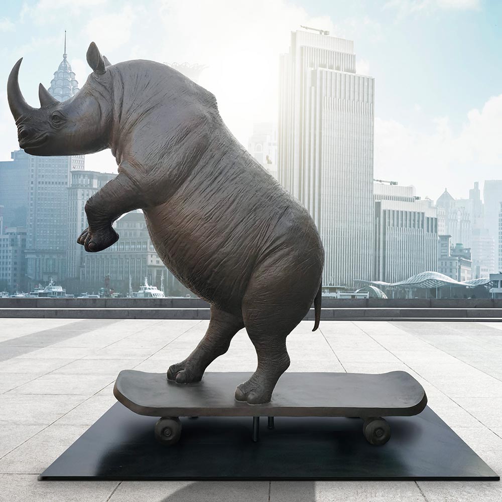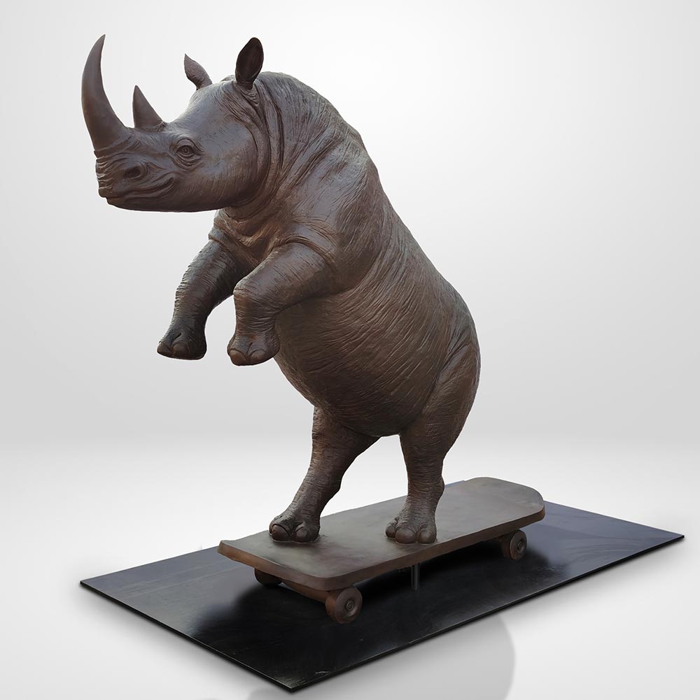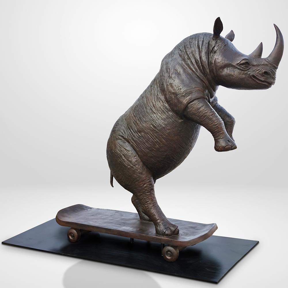 The Northern White Rhino Races on the Skateboard (Bronze Sculpture)