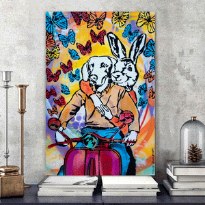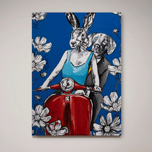 It is important to keep your painting out of direct sunlight and not to lean anything against the surface of the canvas. If it gets dusty, it can be cleaned with a soft dry cloth.