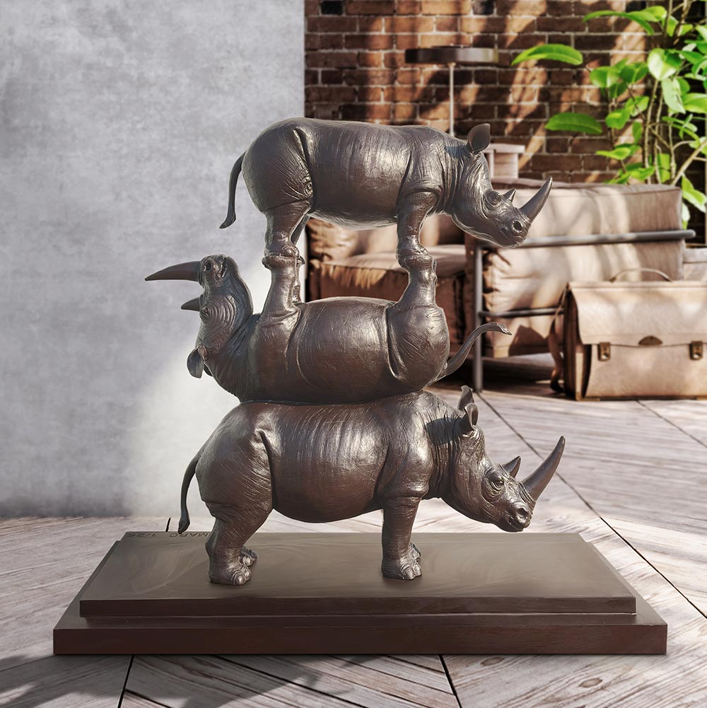 If Rhinos Get Knocked Down They Will Get Back Up Again (Bronze Sculpture)
