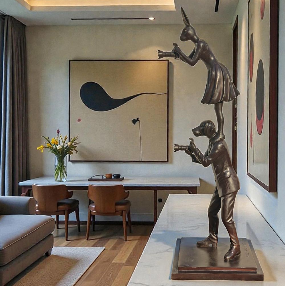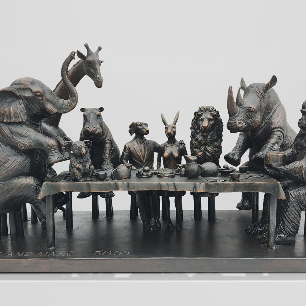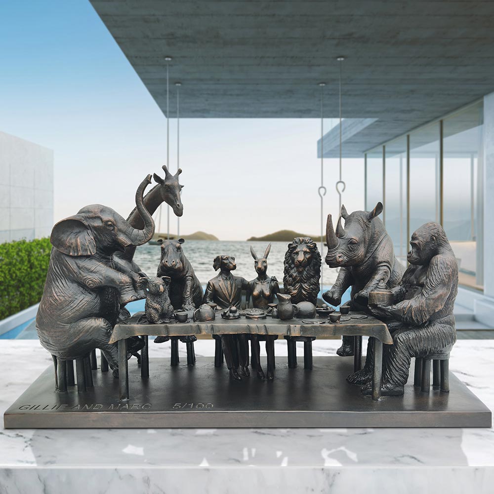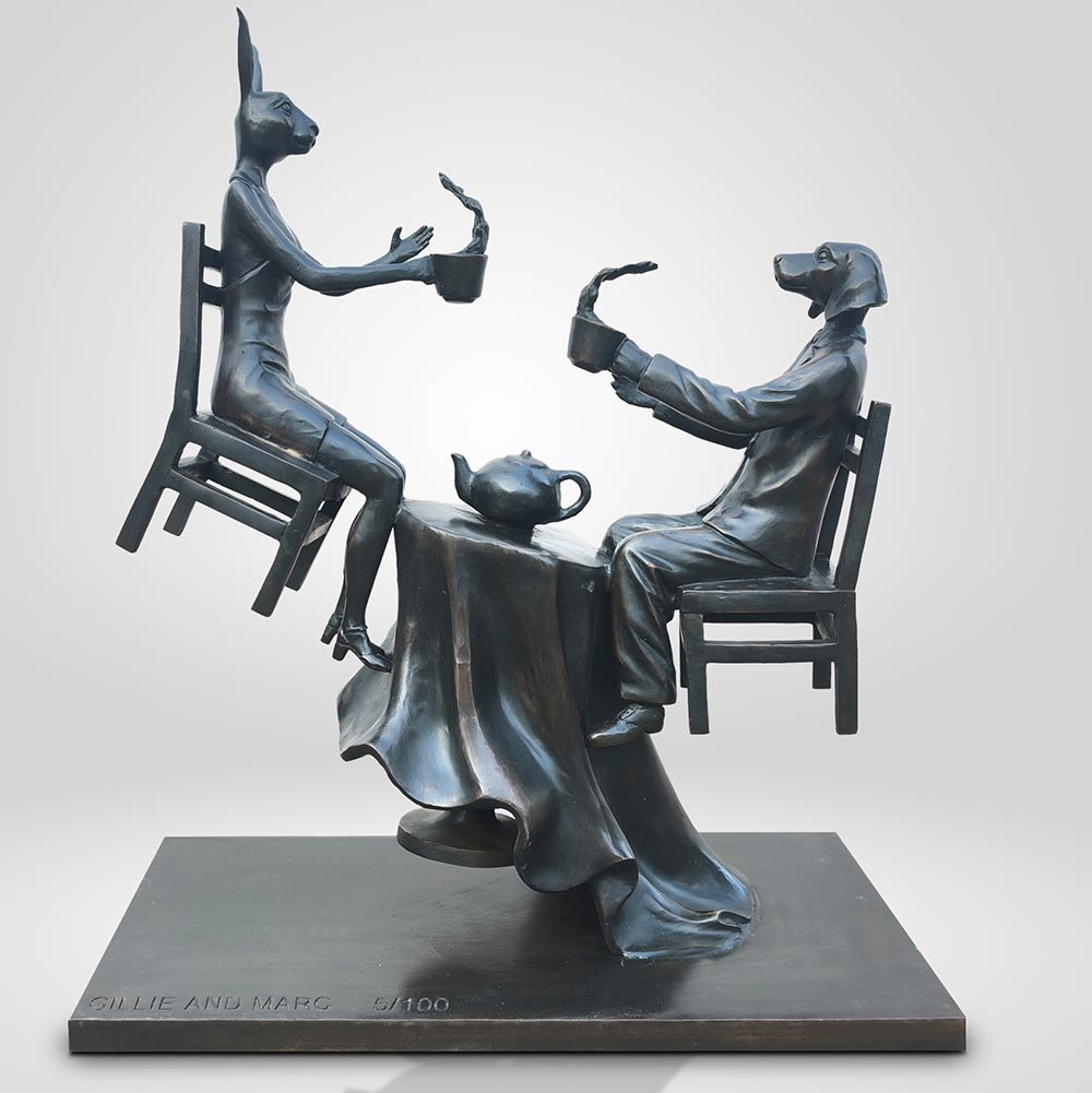 Gillie and Marc love creating beautiful sculptures, pieces of art that take up space in your home to make it more vibrant, interesting, and personal. With every piece created with love, the artists allow you to take home a little bit of the passion they have inside them, whether that be for one of the beautiful animals in the world they strive to save, or their iconic lovers, Rabbitwoman and Dogman. Gillie and Marc work in a range of materials for their sculptures including bronze, resin, fibreglass, stainless steel and ceramic.