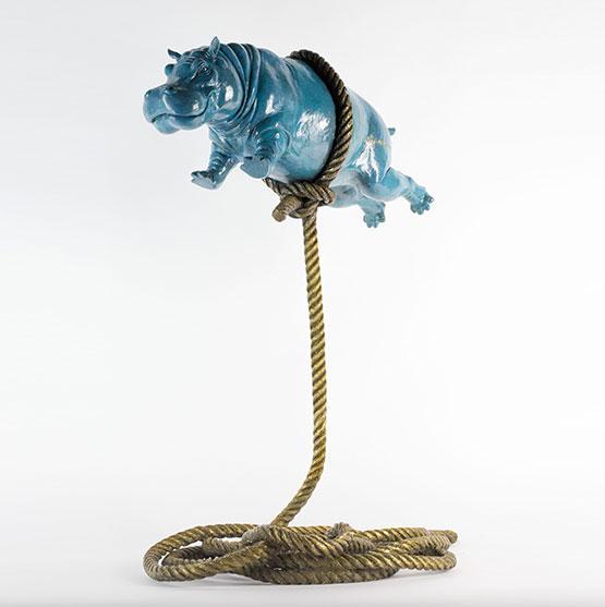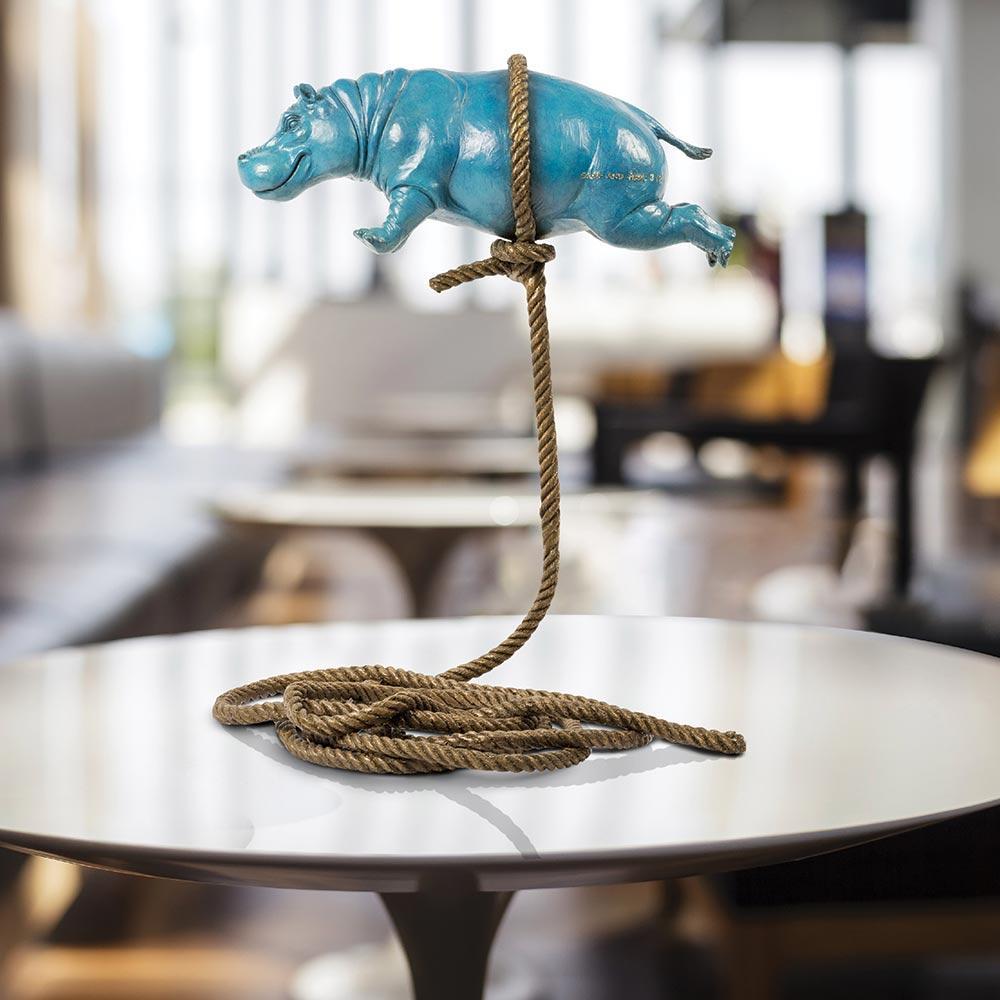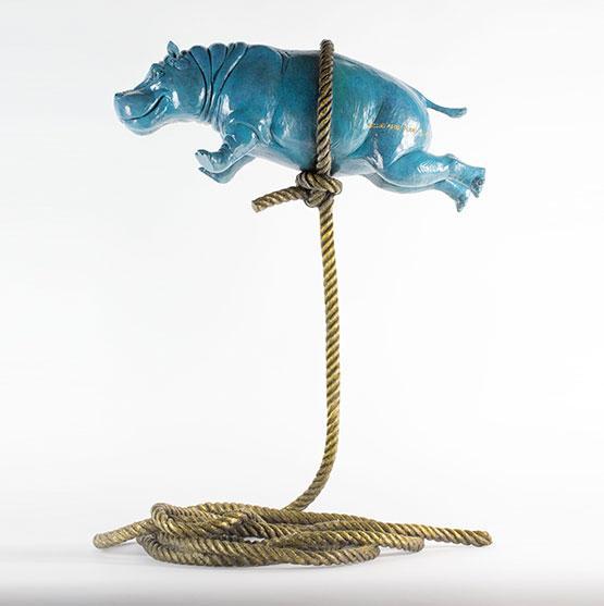 The bronze rope collection represents the juxtaposition between freedom and restriction. This amazing flying hippo defies all the odds, and soars free from the harsh world habitat loss has caused for his species.