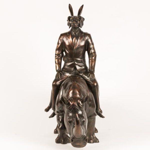 Rabbitwoman and Dogman had a dream; to be the champions for the white rhinos whose reality was heading closer and closer to extinction. Gillie and Marc are actively being this champion that the rhinos so desperately need. By bringing these creatures into the thoughts and hearts of the public with their ground-breaking public sculptures, the rhinos are being remembered, giving them more hope for escaping extinction. Just like Gillie and Marc, Rabbitwoman and Dogman ride the rhino for all the world to see, making people look up from their daily lives to marvel at the beautiful creature in front of them.