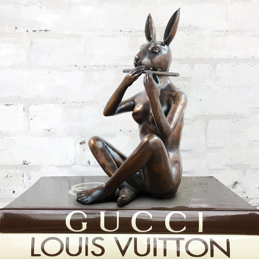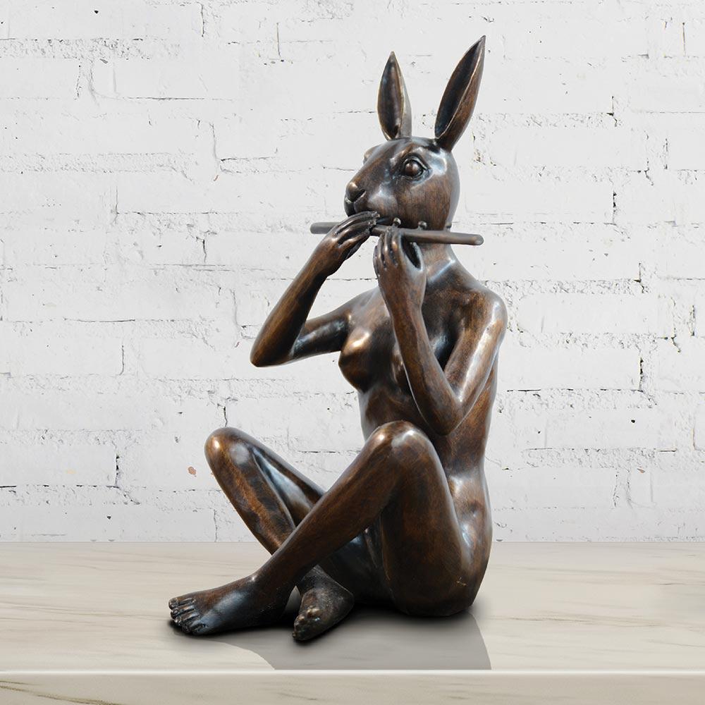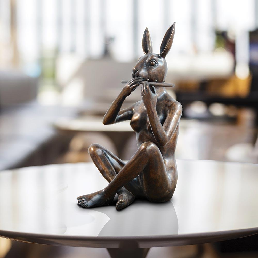 Music has always been a huge inspiration for Gillie and Marc. Whenever they’re painting, they listen to their favourite sound tracks! They love the way a tune can elicit powerful emotions. Music also has the power to bring people together…to the right song, a look can tell an entire story! The artists created Rabbitwoman and Dogman, along with all of their friends, playing instruments that express their individuality to a beat they an all dance to. These limited edition bronze-creations will bring vibrancy and fun to any room!
