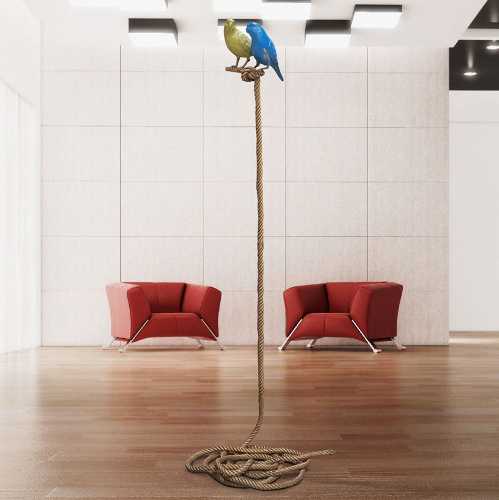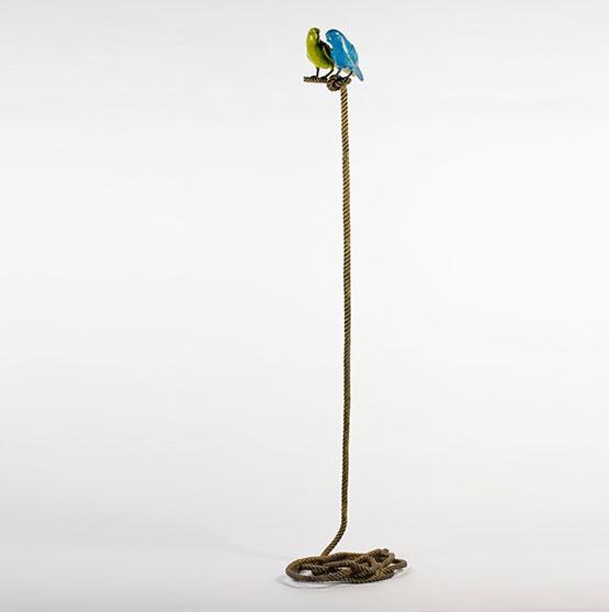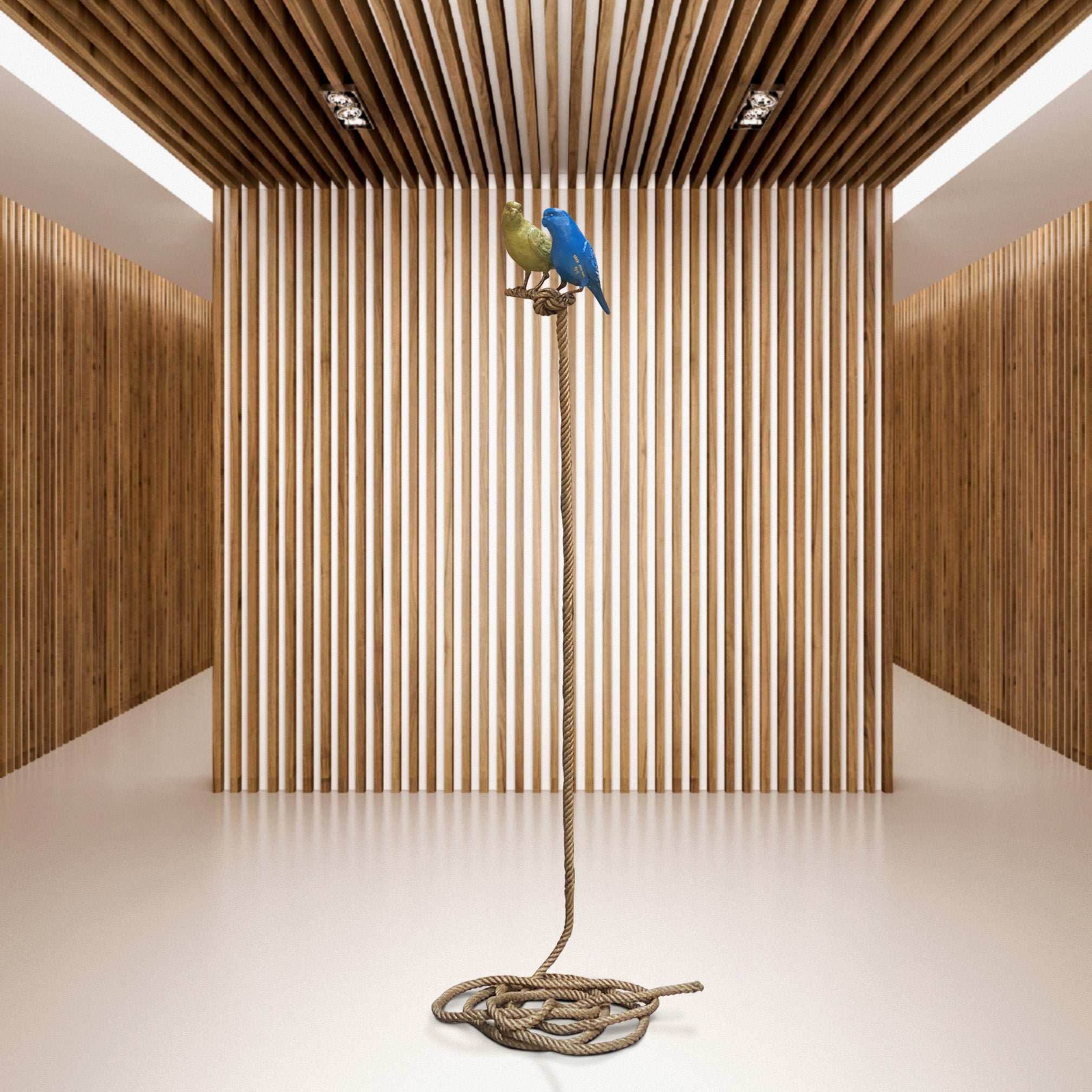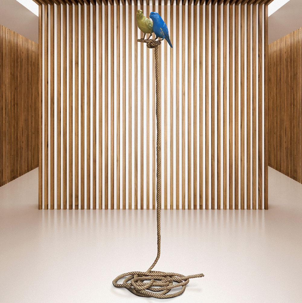 Gillie and Marc have always admired budgies. These bright parrots are arguably one the most beautiful birds in the world, and are loved by so many people. As kids, Marc used to breed the Australian budgie, whereas Gillie would find excuses to visit her cousin’s English budgies (the latter being a few inches bigger). The artists also find this affectionate bird very relatable due to their adorable “pair bonding”. Believe it or not, budgies can be quite picky when it comes to finding a mate with each bird having its own desired personality criteria for its mate. In bonding, a male budgie will sing to his mate, bob his head at her, and feed her. A male and female budgie will touch beaks often and sit snuggled up against one another as well as preen each other’s feathers. Gillie and Marc’s budgies have been so well-received that they are working on a project that will see monumental, large-scale budgies installed into various locations all over the world.
