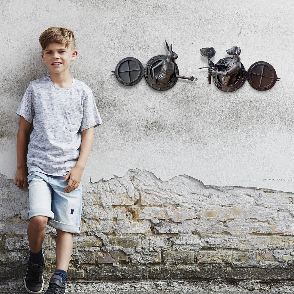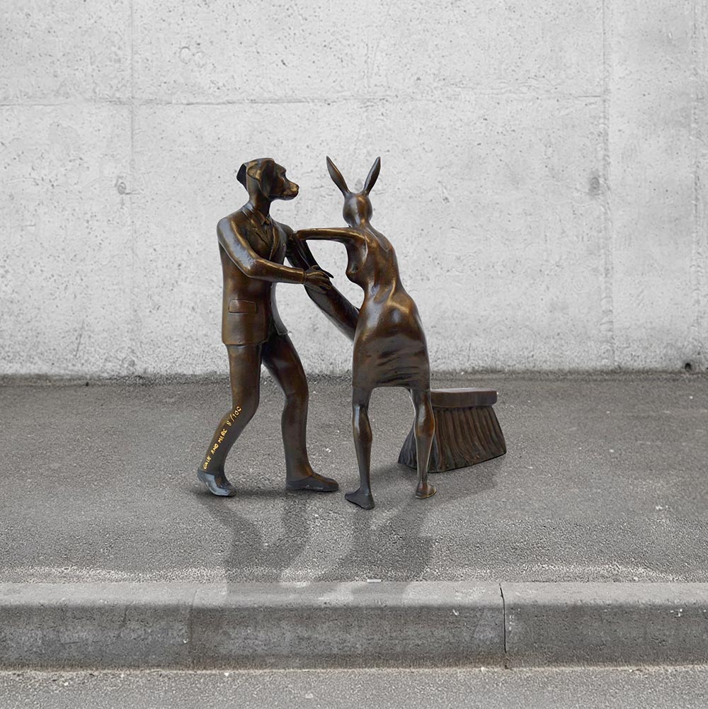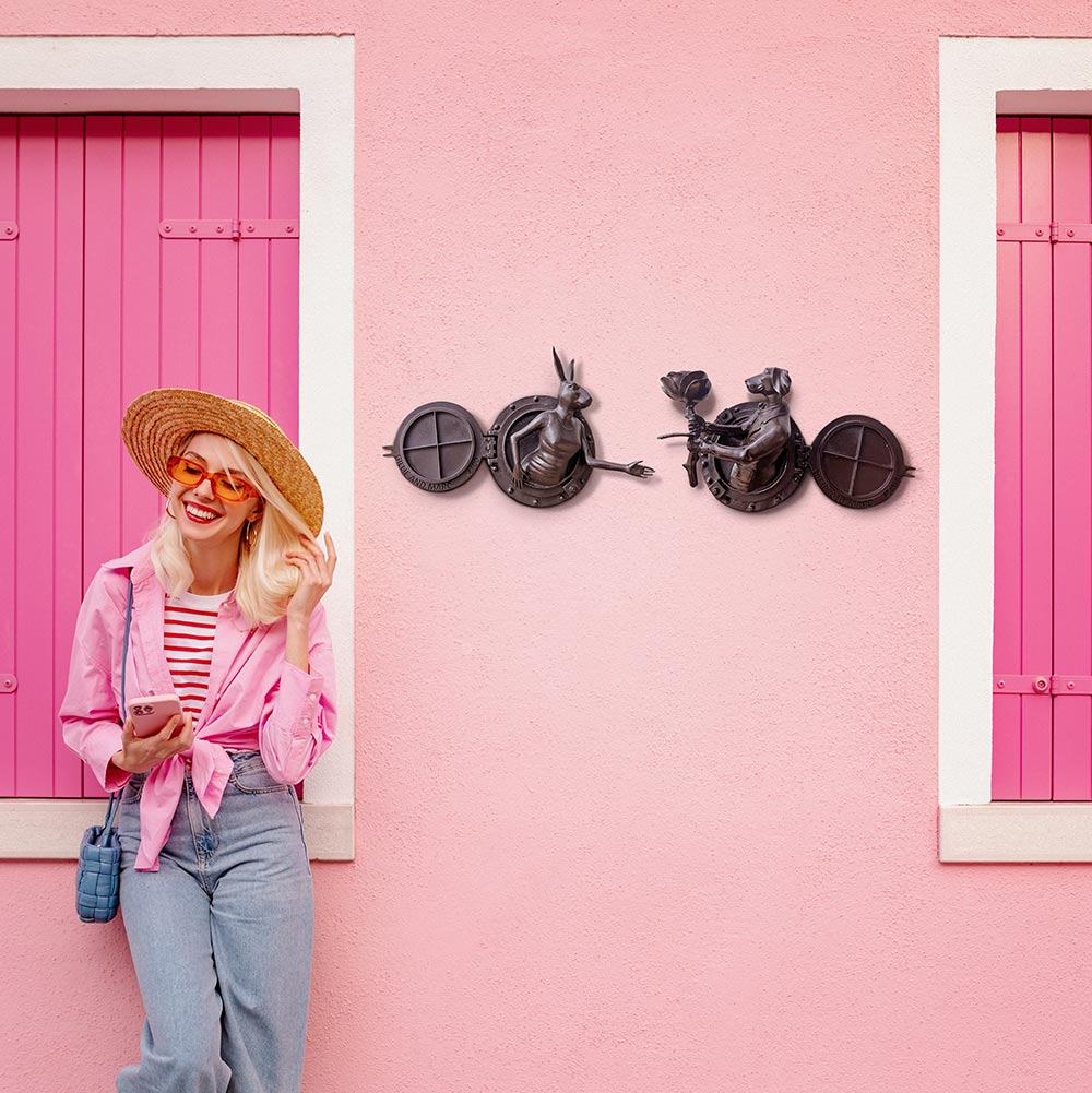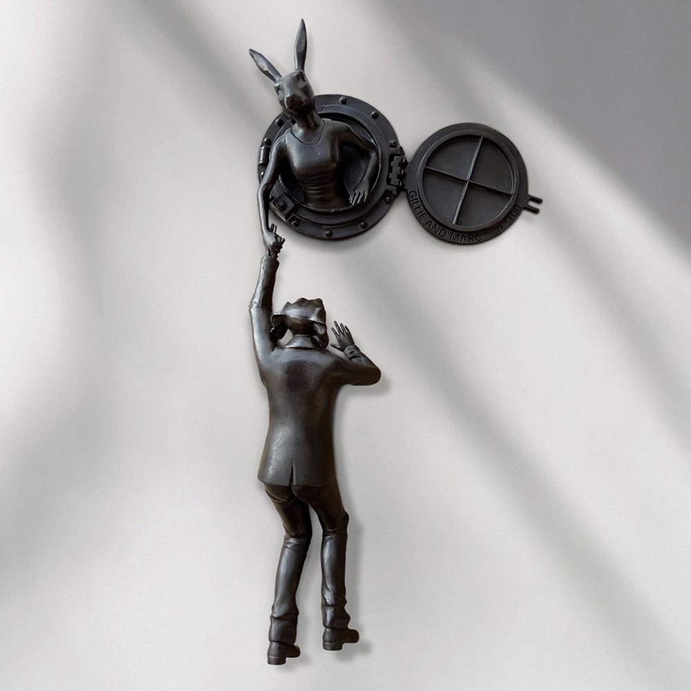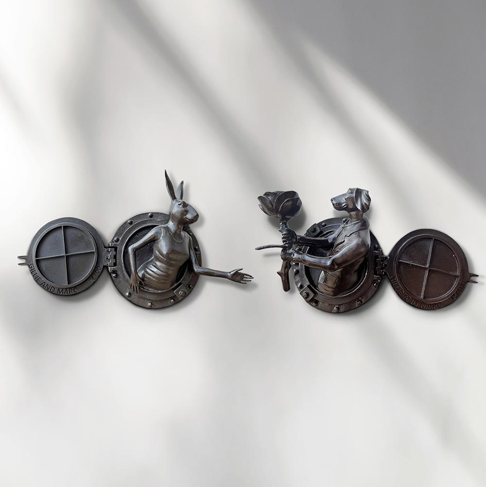 Rabbitwoman and Dogman tell the autobiographical tale of two opposites coming together as best friends and soul mates. As unlikely animal kingdom companions, the Rabbit and the Dog stand for diversity and acceptance through love. Without a definitive race, religion, orientation or culture, Gillie and Marc’s iconic hybrid characters symbolise the acceptance of all people as one.
