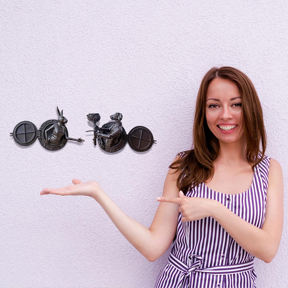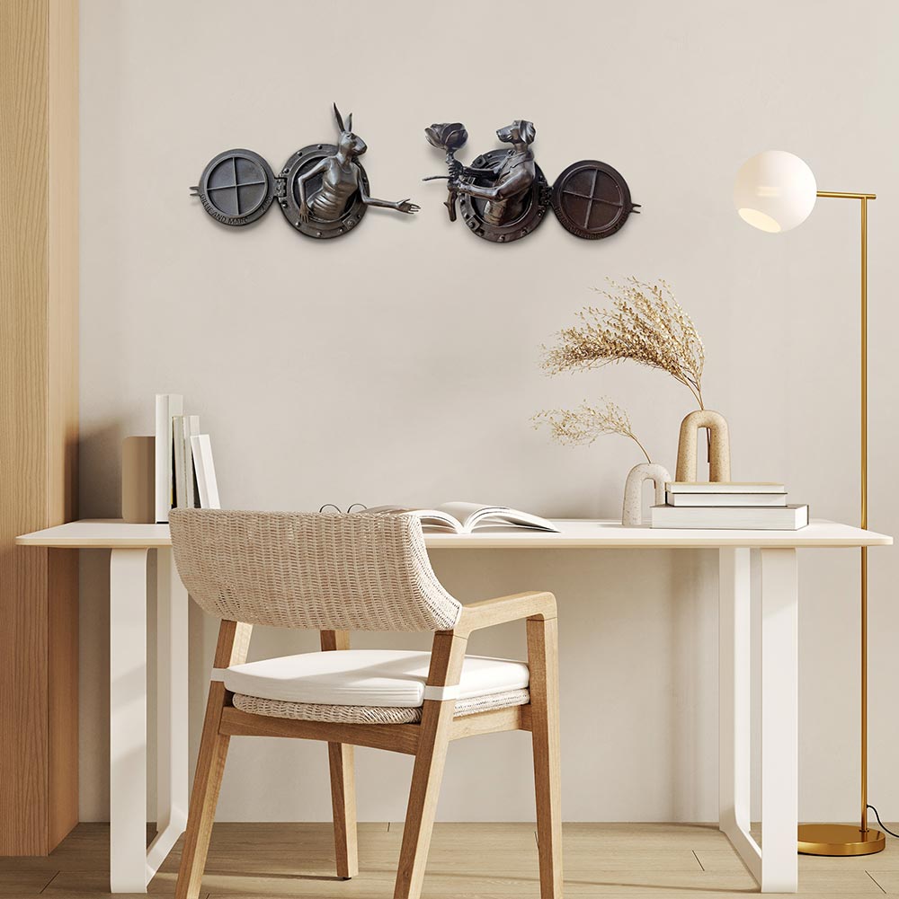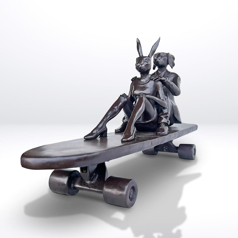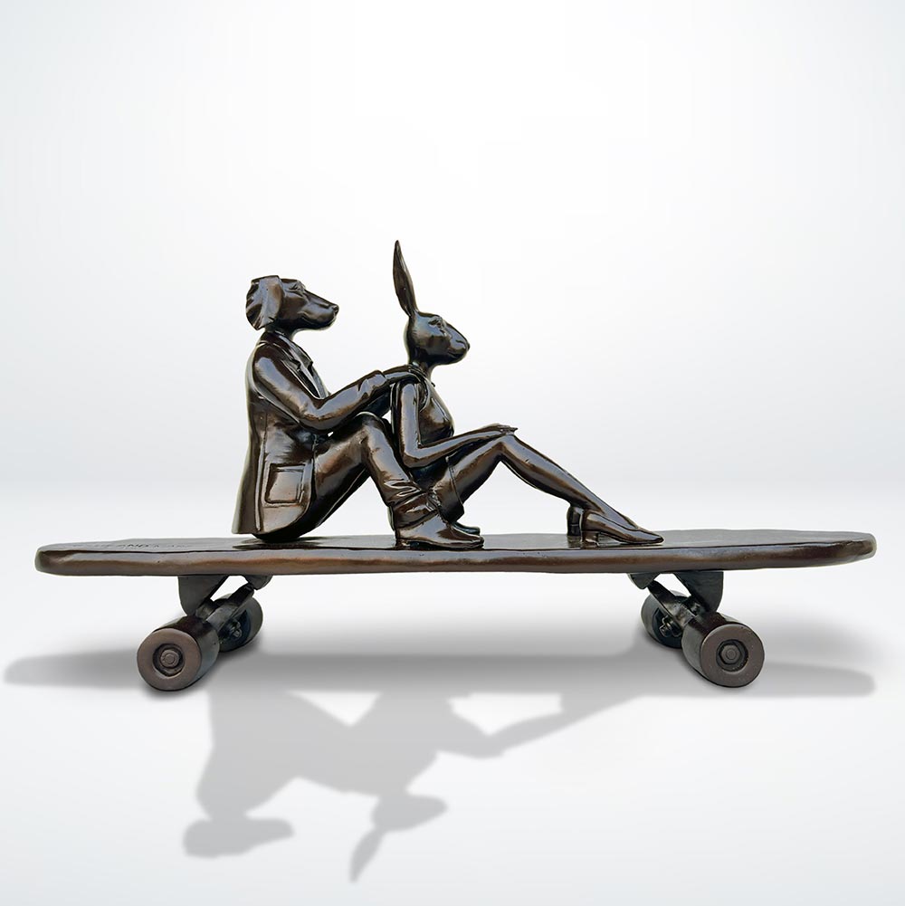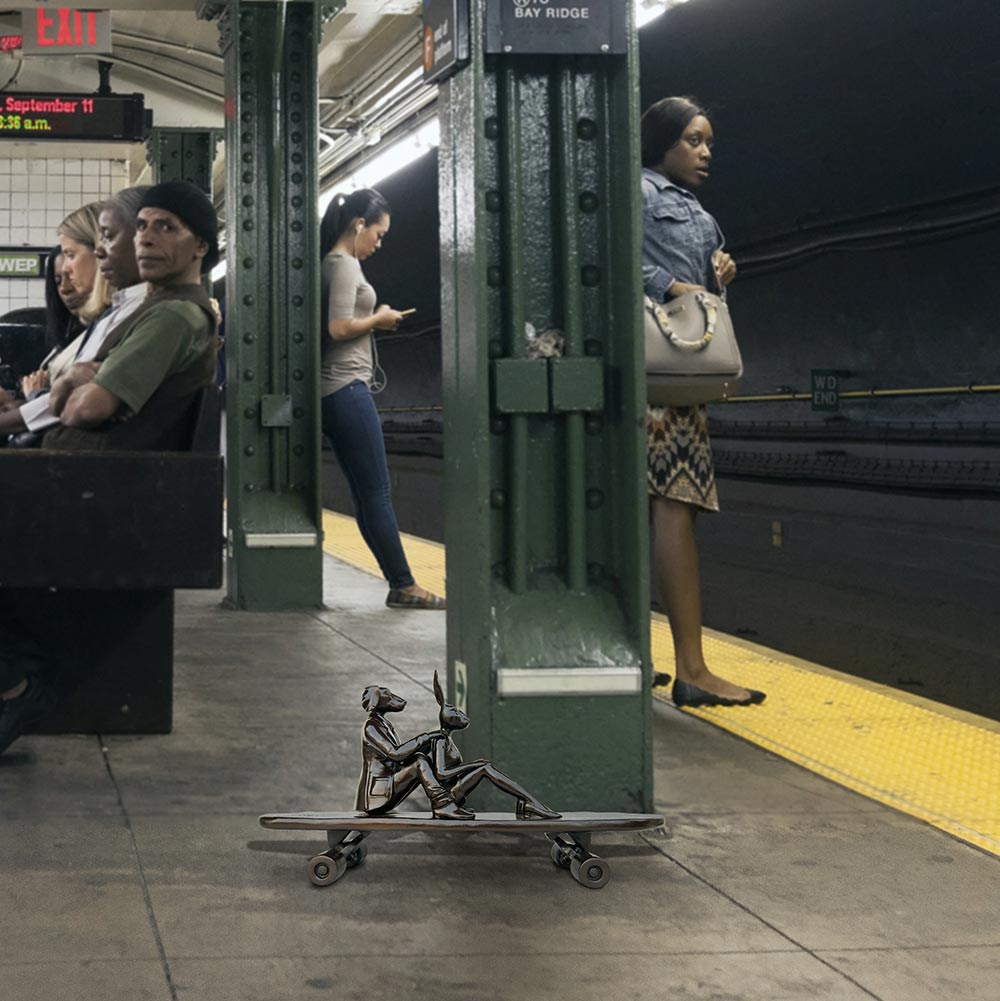 Rabbitwoman and Dogman tell the autobiographical tale of two opposites coming together as best friends and soul mates. As unlikely animal kingdom companions, the Rabbit and the Dog stand for diversity and acceptance through love. Without a definitive race, religion, orientation or culture, Gillie and Marc’s iconic hybrid characters symbolise the acceptance of all people as one.