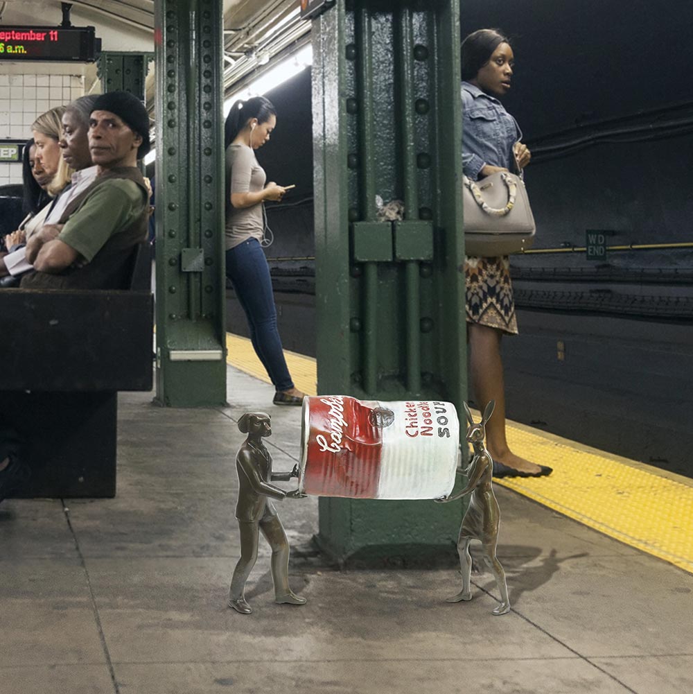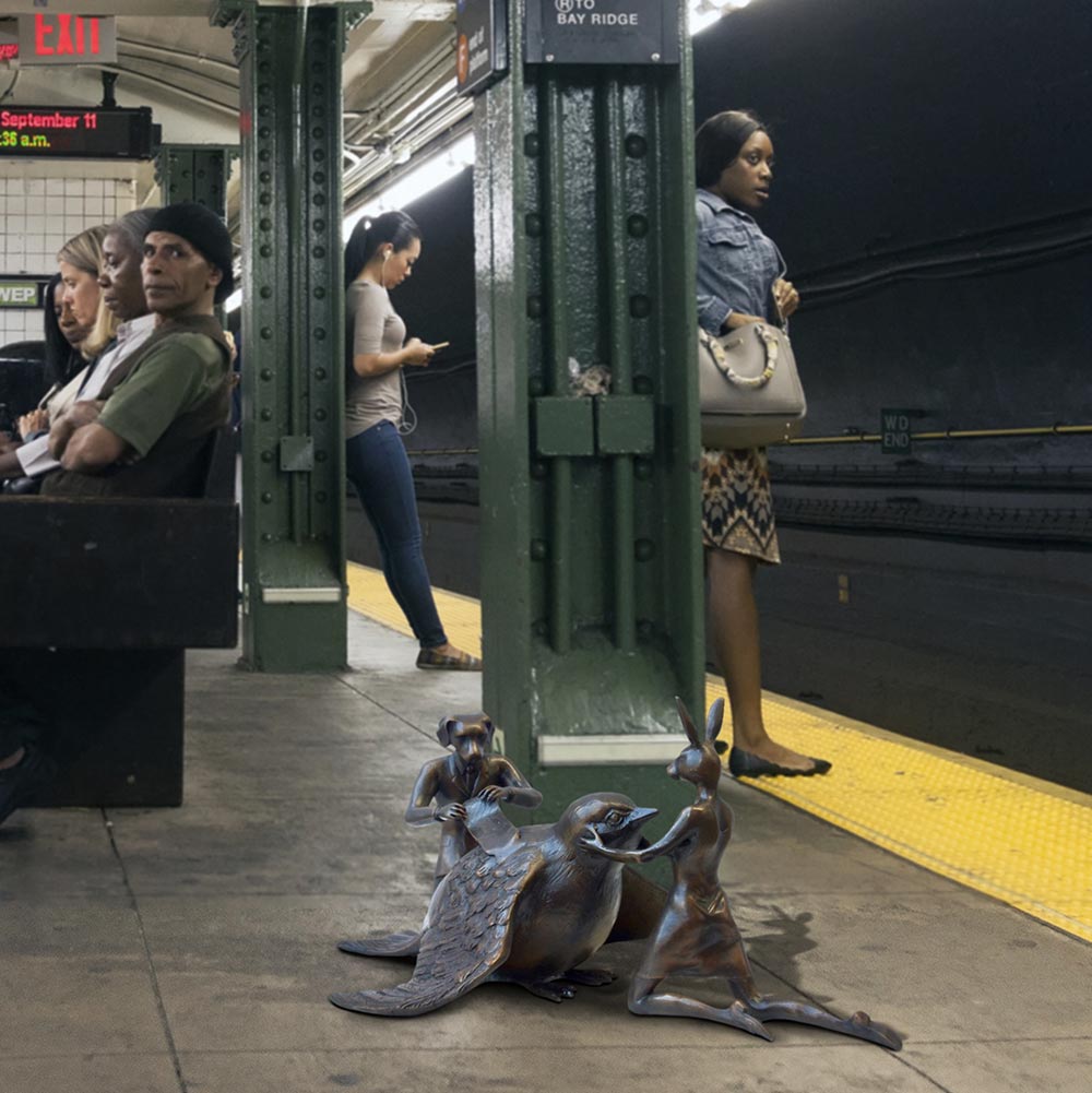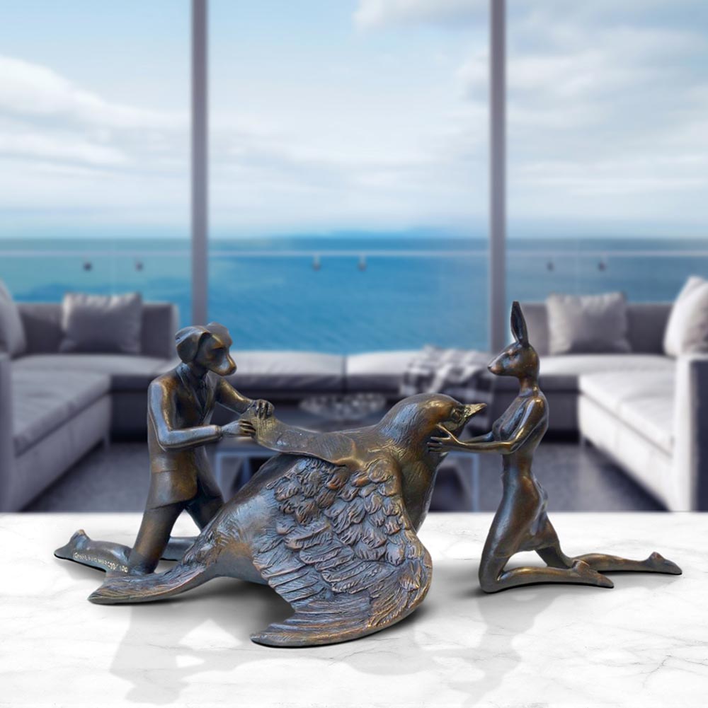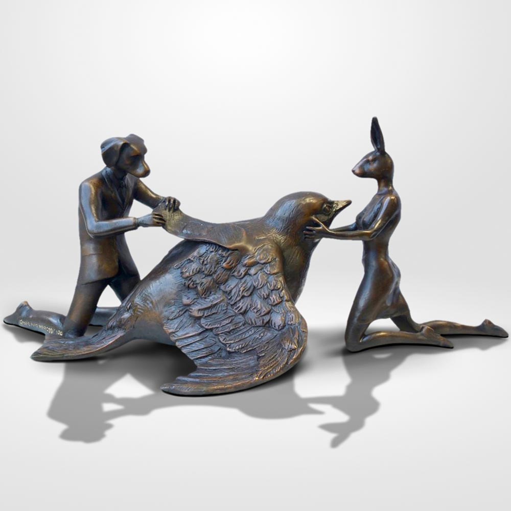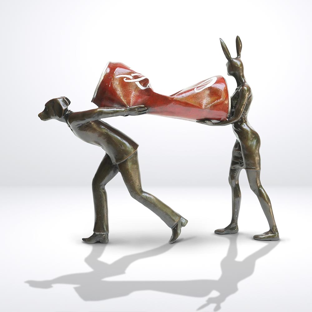 Rabbitwoman and Dogman tell the autobiographical tale of two opposites coming together as best friends and soul mates. As unlikely animal kingdom companions, the Rabbit and the Dog stand for diversity and acceptance through love. Without a definitive race, religion, orientation or culture, Gillie and Marc’s iconic hybrid characters symbolise the acceptance of all people as one.